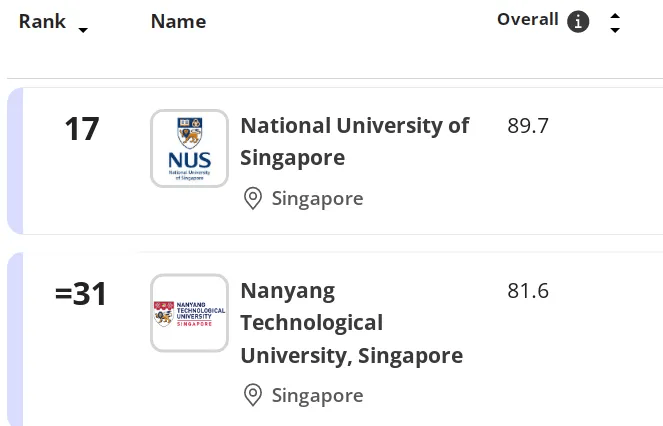 澳大利亚依旧保持强势,共有6所高校跻身全球前百。而墨尔本大学是唯一稳居全球前50的代表,表现非常稳定。新加坡的两所顶尖高校——新加坡国立大学与南洋理工大学,分别为第十七名和第三十一名,表现相当突出,展现出强大的实力。