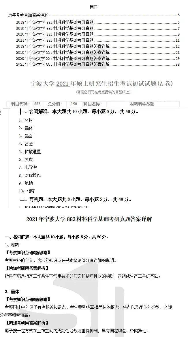 2021年宁波大学883材料科学基础考研真题试卷与答案详解