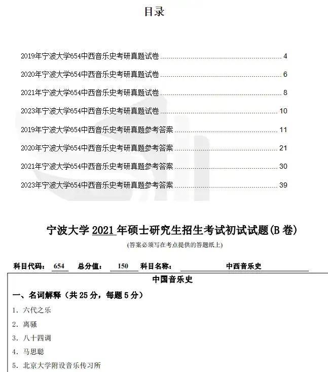 2025年宁波大学654中西音乐史考研真题与参考答案(回忆版)