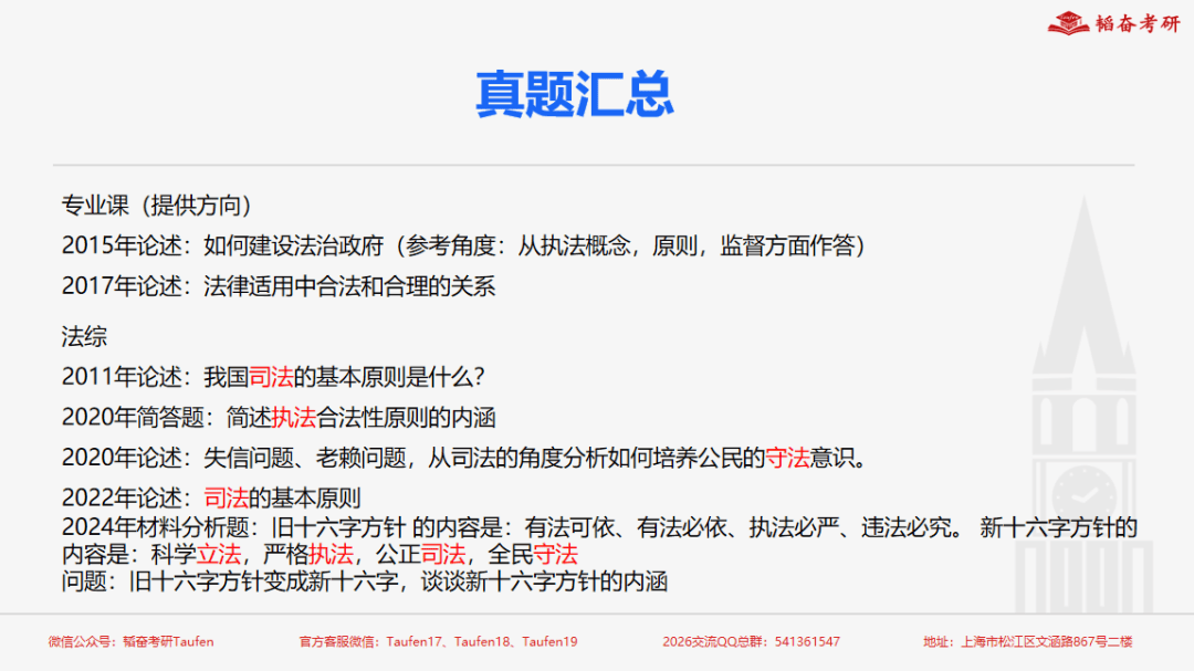 韬奋考研2026国庆课程已经基本结束授课了,在金秋十月,相信参加授课的大家都收获了自己满满的知识果实。国庆班各个科目的授课,既包含对基础知识的讲解,对历年考察情况精准研判后,浓缩重点、形成体系;也结合对历年真题的分析,进行由浅到深,从泛到精的讲解,让考研er们充分了解华政考研到底考什么,考试里常见的套路,以及应对策略,让大家在尽可能短的时间内对知识有深的理解和更牢的掌握。下面就让我们看一看2026国庆班各专业的课程回顾吧。