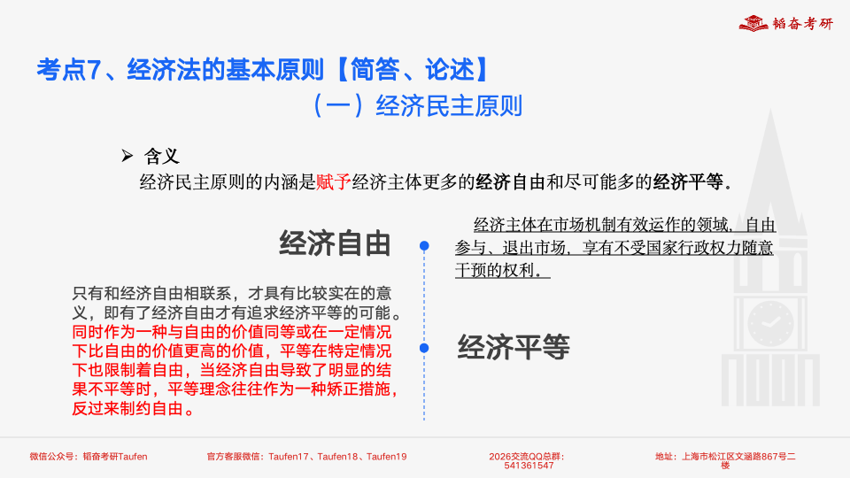 课程内容回顾:堂堂学长于2026年10月5日—10月8日讲述了经济法学国庆班课程的内容学长依照考纲内容按照经济法、商法、金融法的顺序,依次为同学们讲解了各个板块的重要知识点,对于常考考点进行了归纳总结。对于可能出现的热点内容,学长进行了有针对性的补充如:《破产法》修订草案、数字金融、绿色金融等。最后,学长对同学们再备考过程中可能会出现的问题进行了解答,给予同学们学习上的建议。