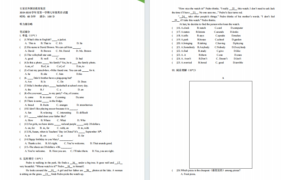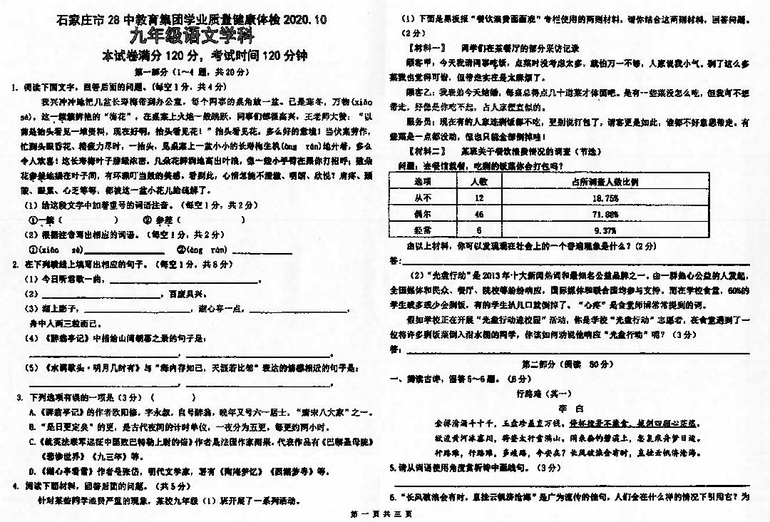 不过大部分学校一般是再上一周的课然后才进行月考(10月中旬左右),小编收集到一些学校往年第一次月考试卷,课余时间给孩子练习练习,临阵磨枪!
