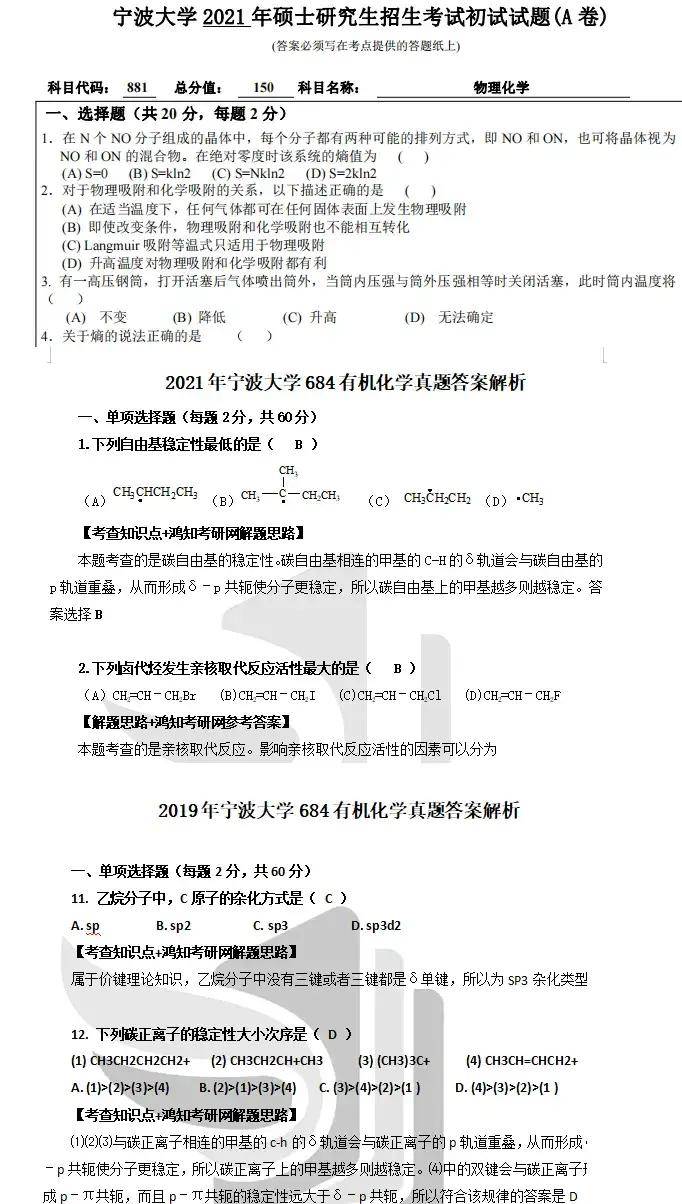 2026宁波大学化学考研资料【2011-2020年宁大684有机化学881物理化学考研真题与答案+笔记题库】