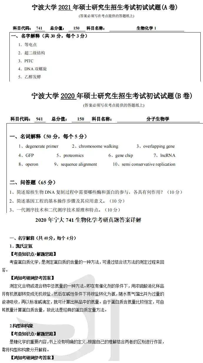 2020 年宁大 941分子生物学考研真题答案详解