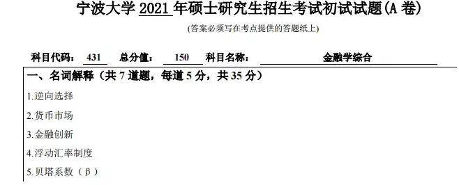 2019-2025年宁波大学431金融学综合考研真题试卷【近年回忆版,24-25缺计算题】