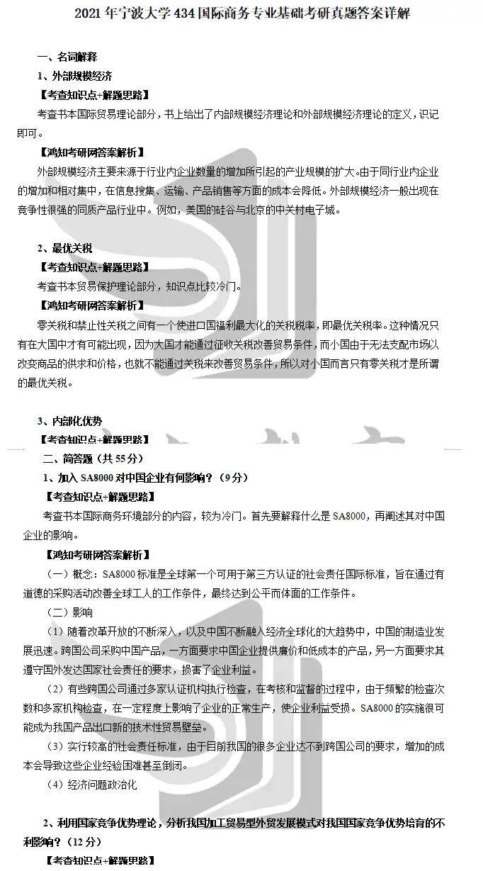2021年宁波大学 434 国际商务专业基础考研真题答案详解