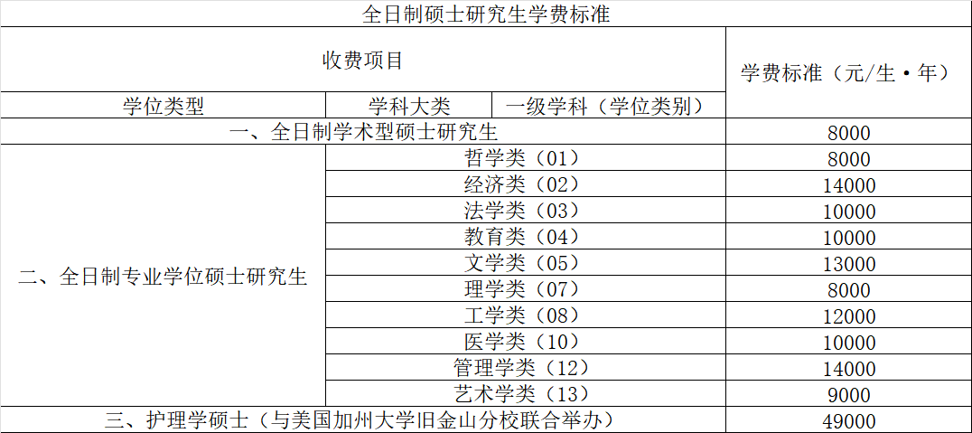 护理学硕士(与美国加州大学旧金山分校联合举办)按湖南省《关于中南大学等高校中外合作办学项目收费标准的批复》(湘发改价费〔2018〕595号)规定的标准收取。