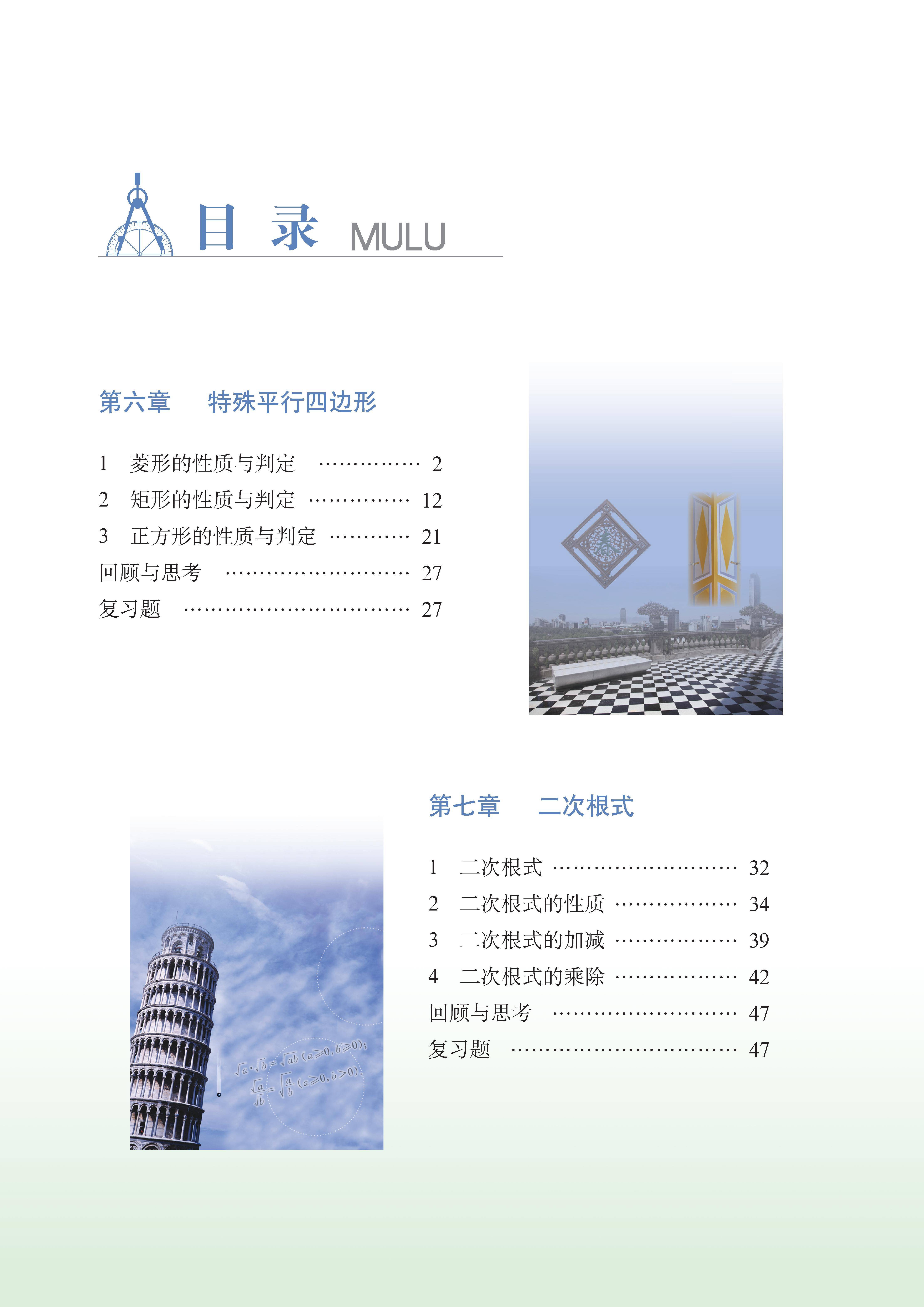 鲁教版八年级下册数学电子课本的目录如下: