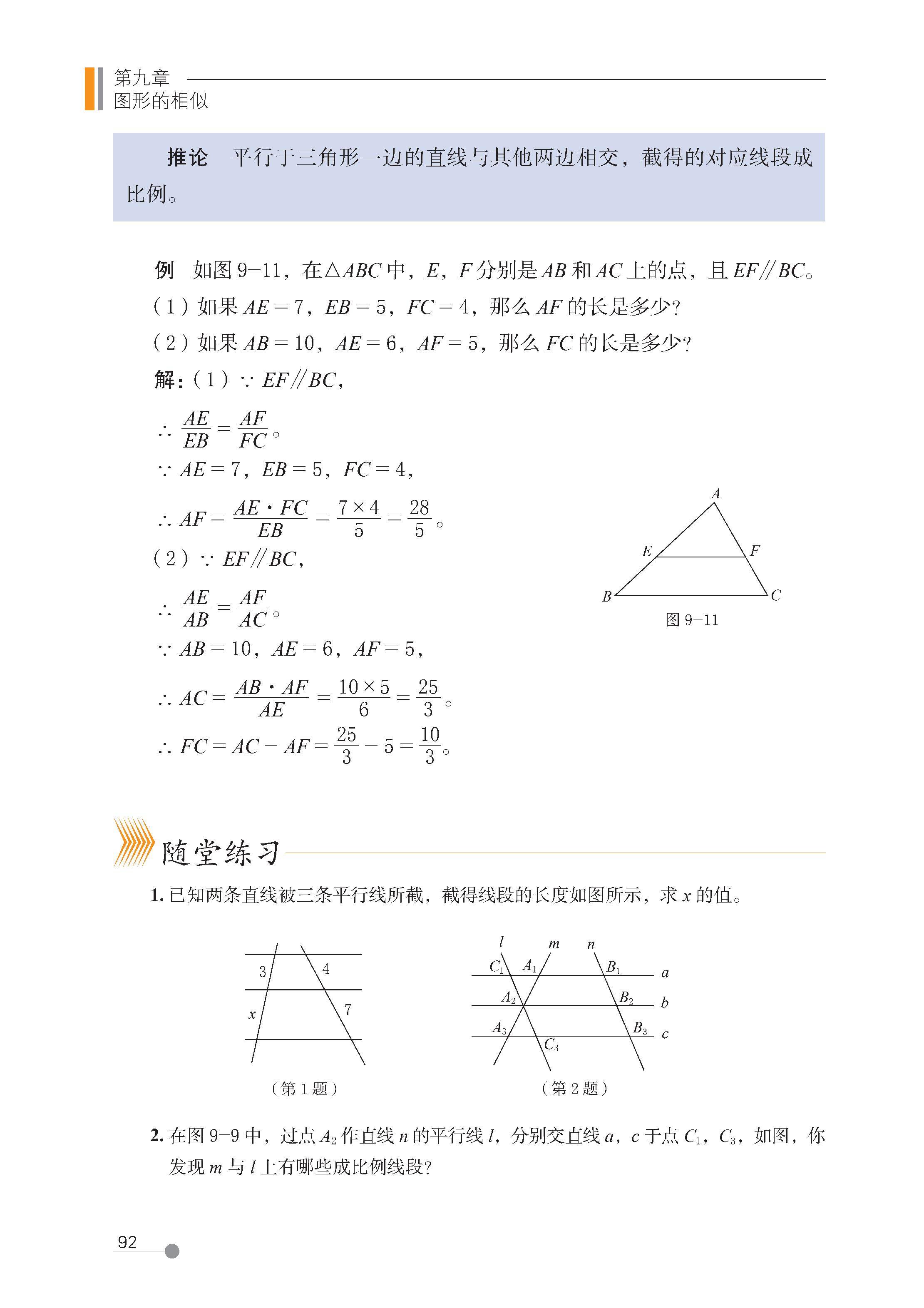 2 平行线分线段成比例