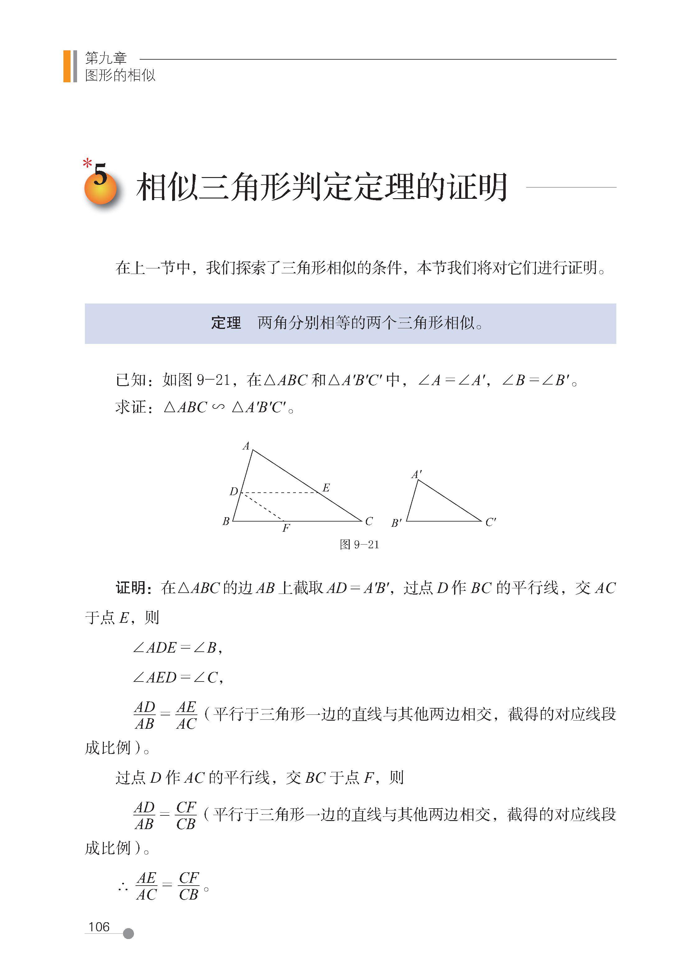 5 相似三角形判定定理的证明