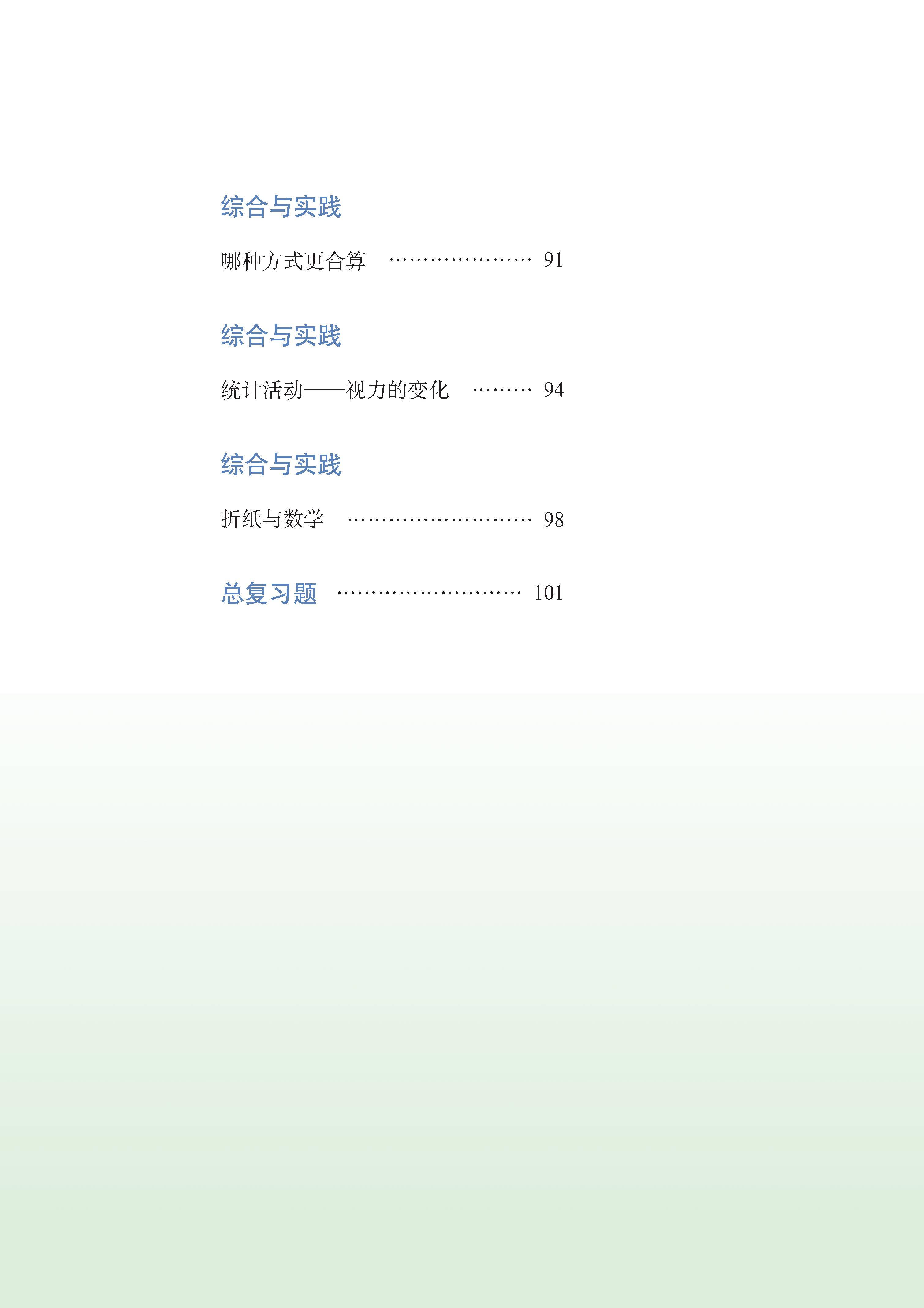 3. 渗透 “数形结合思想”:连接 “数” 与 “形” 的关联“统计活动 —— 视力的变化” 中,“数据”(数)通过 “统计图”(形)直观呈现,学生能从 “折线图的下降趋势”(形)快速理解 “视力下降”(数的规律);“折纸与数学” 中,“折纸的次数”(数)与 “得到的图形个数”(形)对应,可总结出数量关系(如 “折 n 次正方形,得到 2ⁿ个小正方形”)。教学意义:让学生进一步体会 “数缺形时少直观,形少数时难入微”,通过 “数形结合” 整合代数与几何知识,形成更完整的数学知识体系。