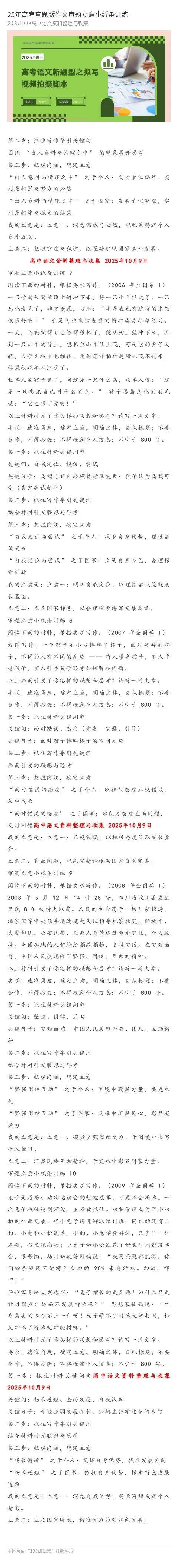 今天,推出“审题立意训练小纸条”特别版:25年高考全国卷真题版(教师版)。需要的,请直接复制,或使用下方的下载链接下载。