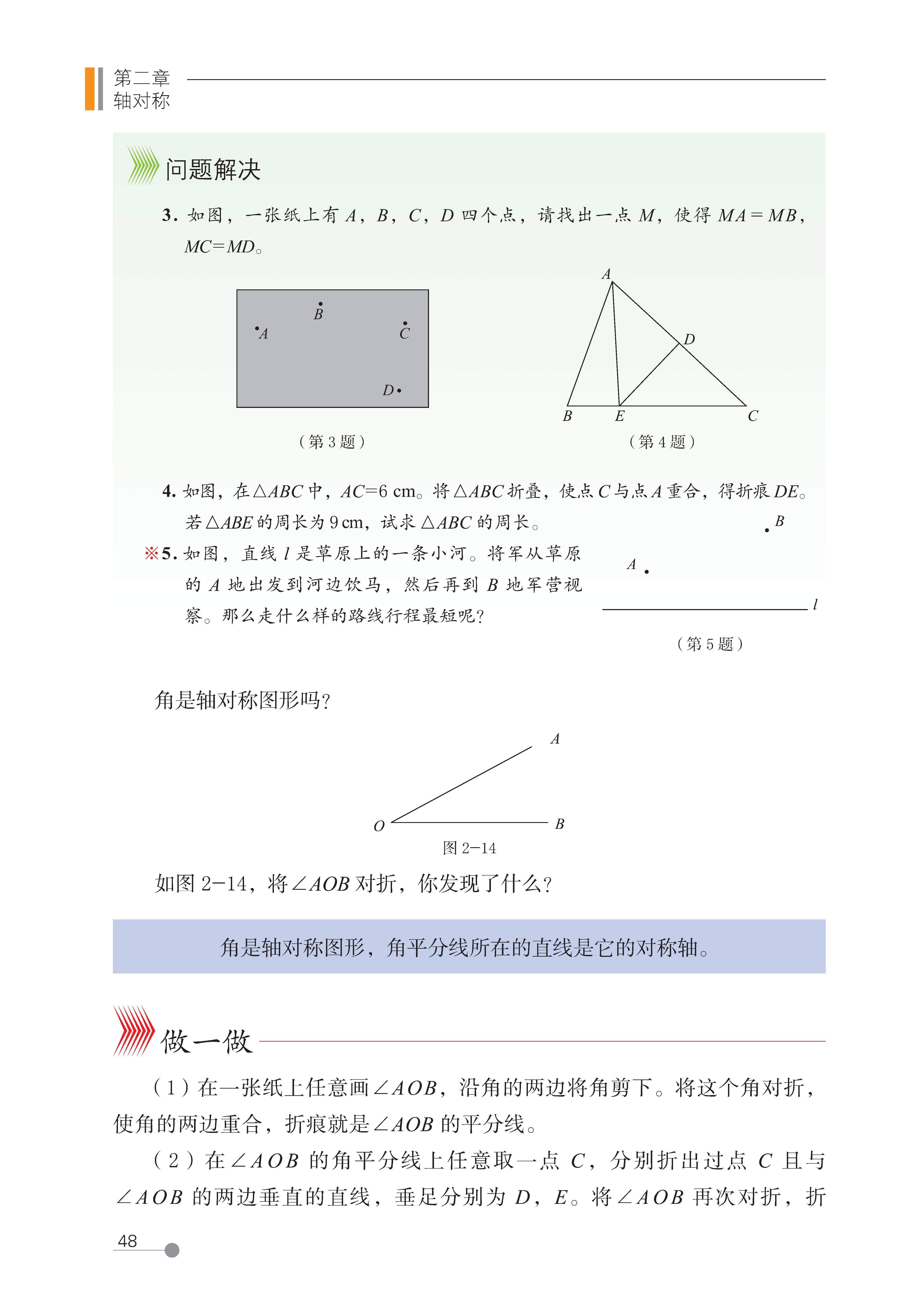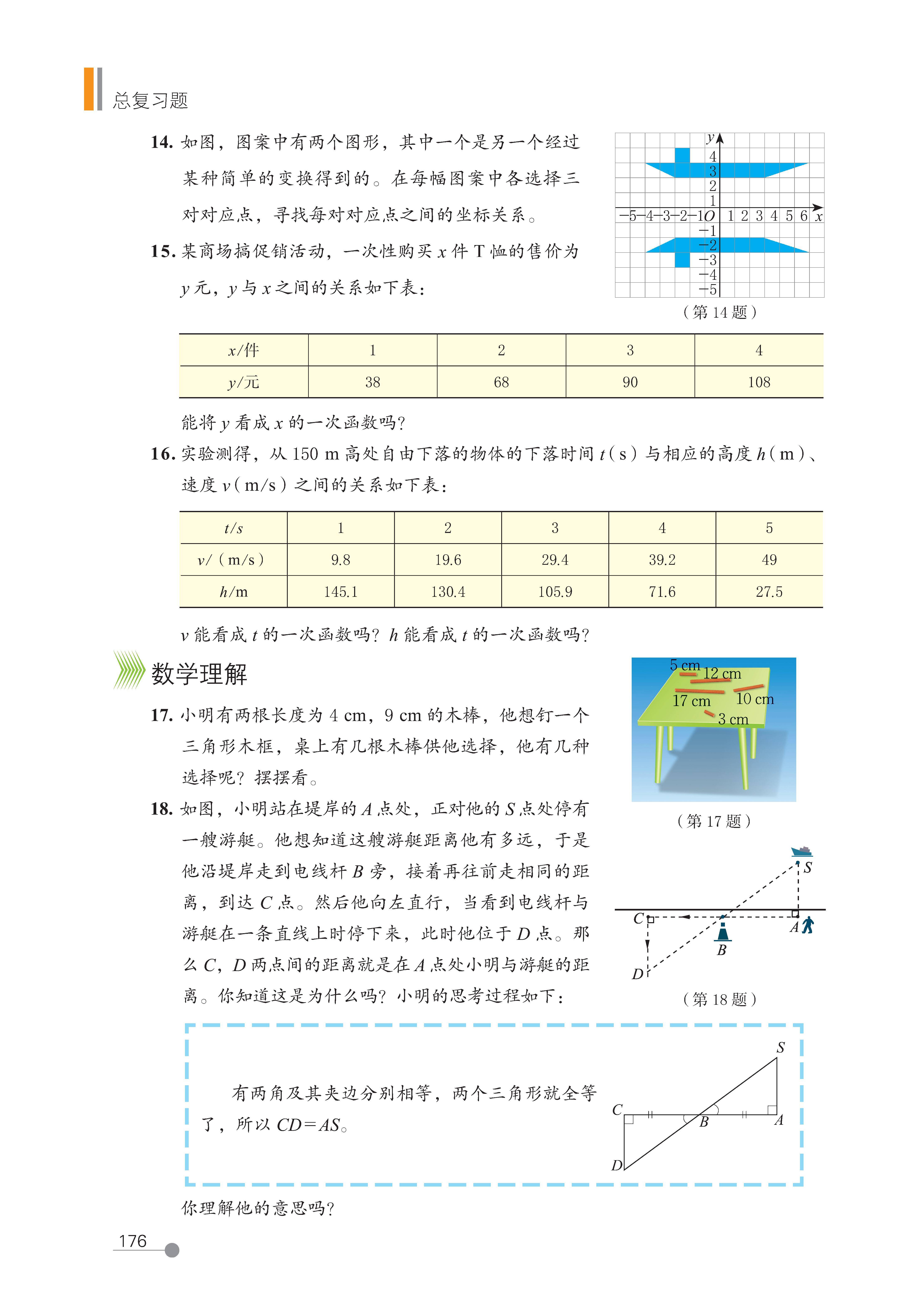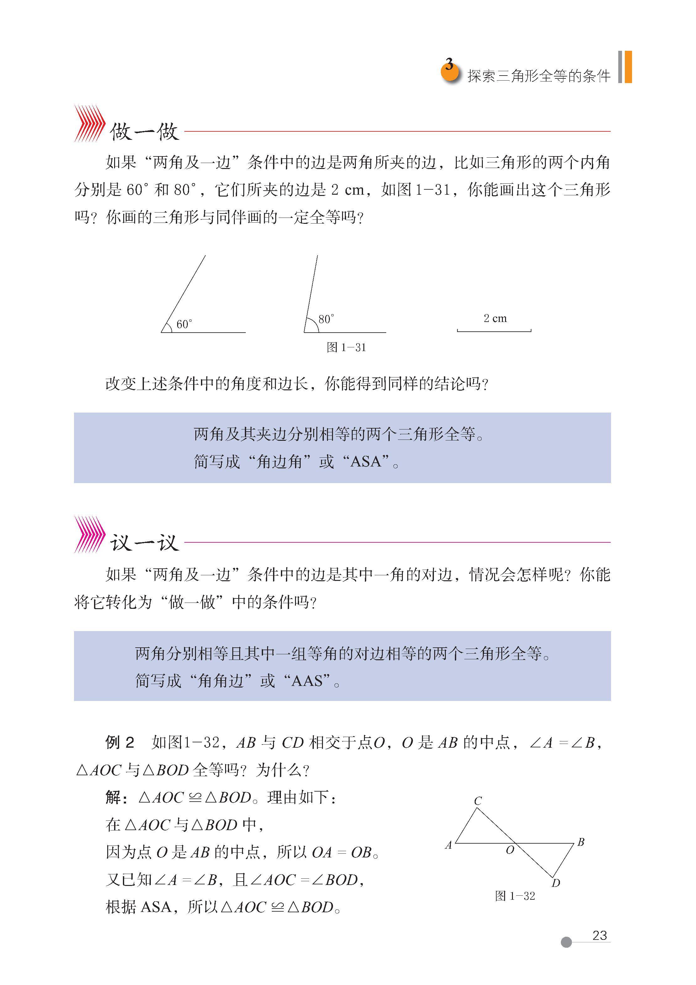 内容:两角及其夹边分别相等的两个三角形全等(简记 “ASA”)。