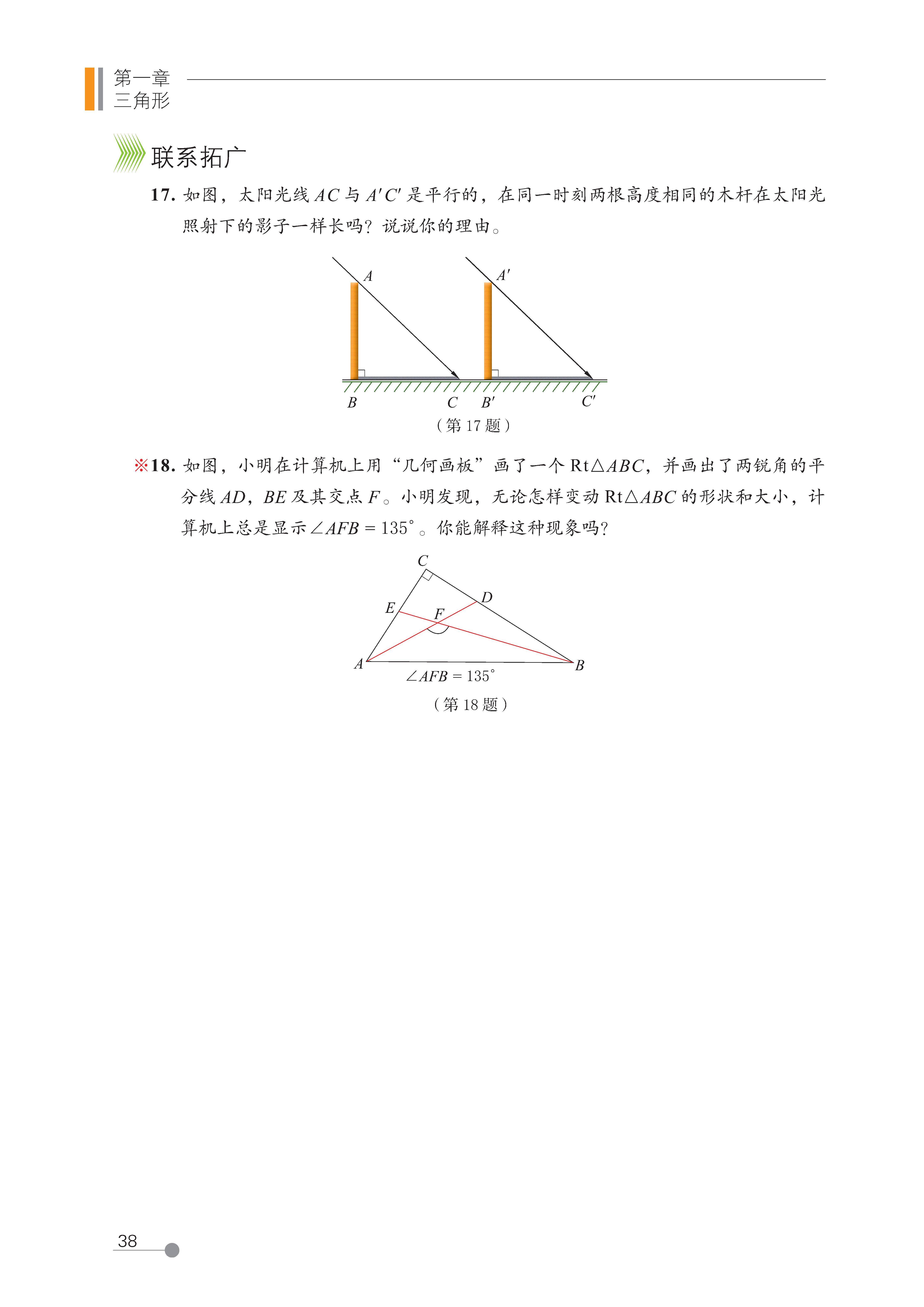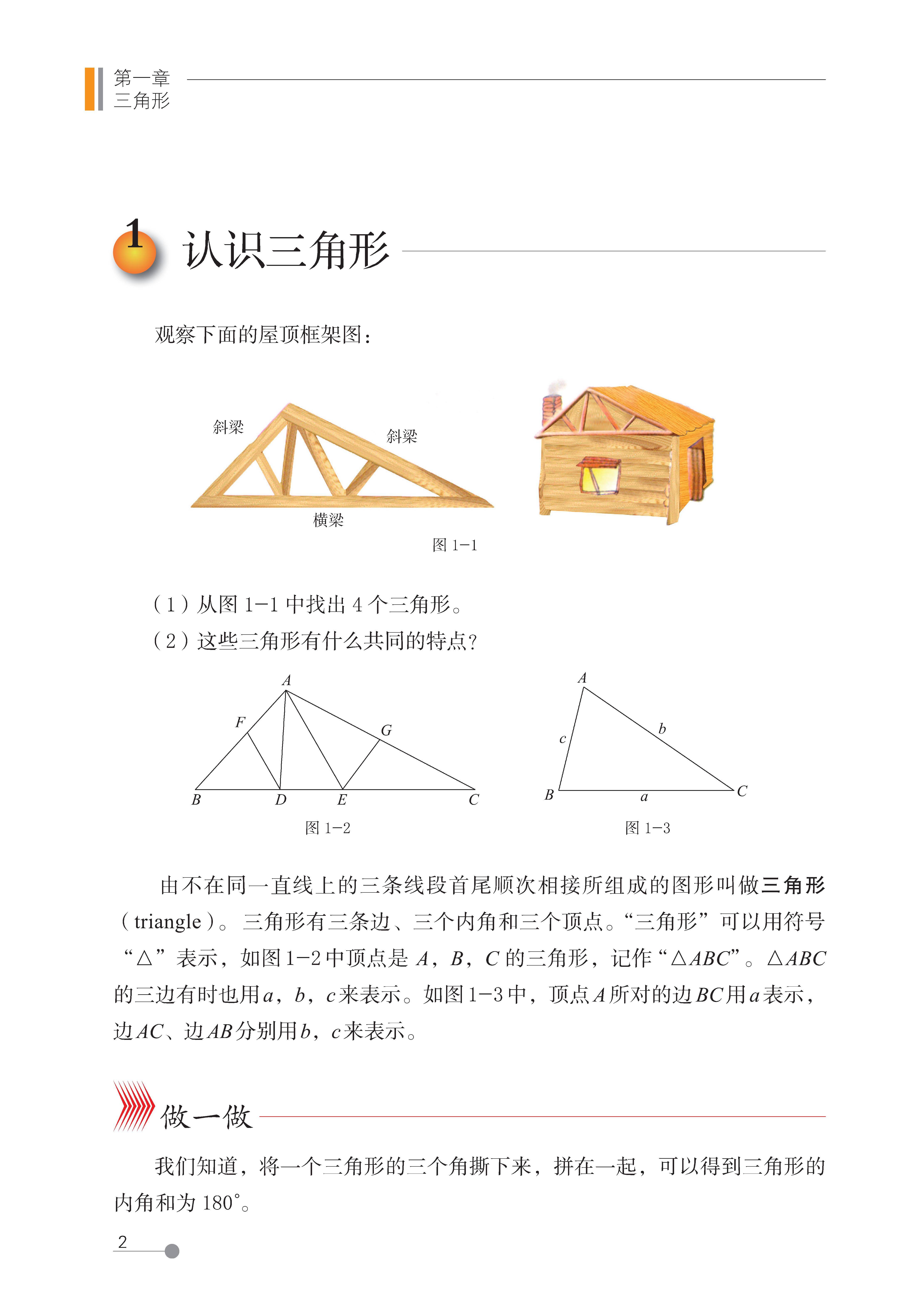 应用场景:已知两个三角形的三条边对应相等(如 “用三根固定长度的木条钉三角形,形状大小唯一”,体现三角形的稳定性)。
