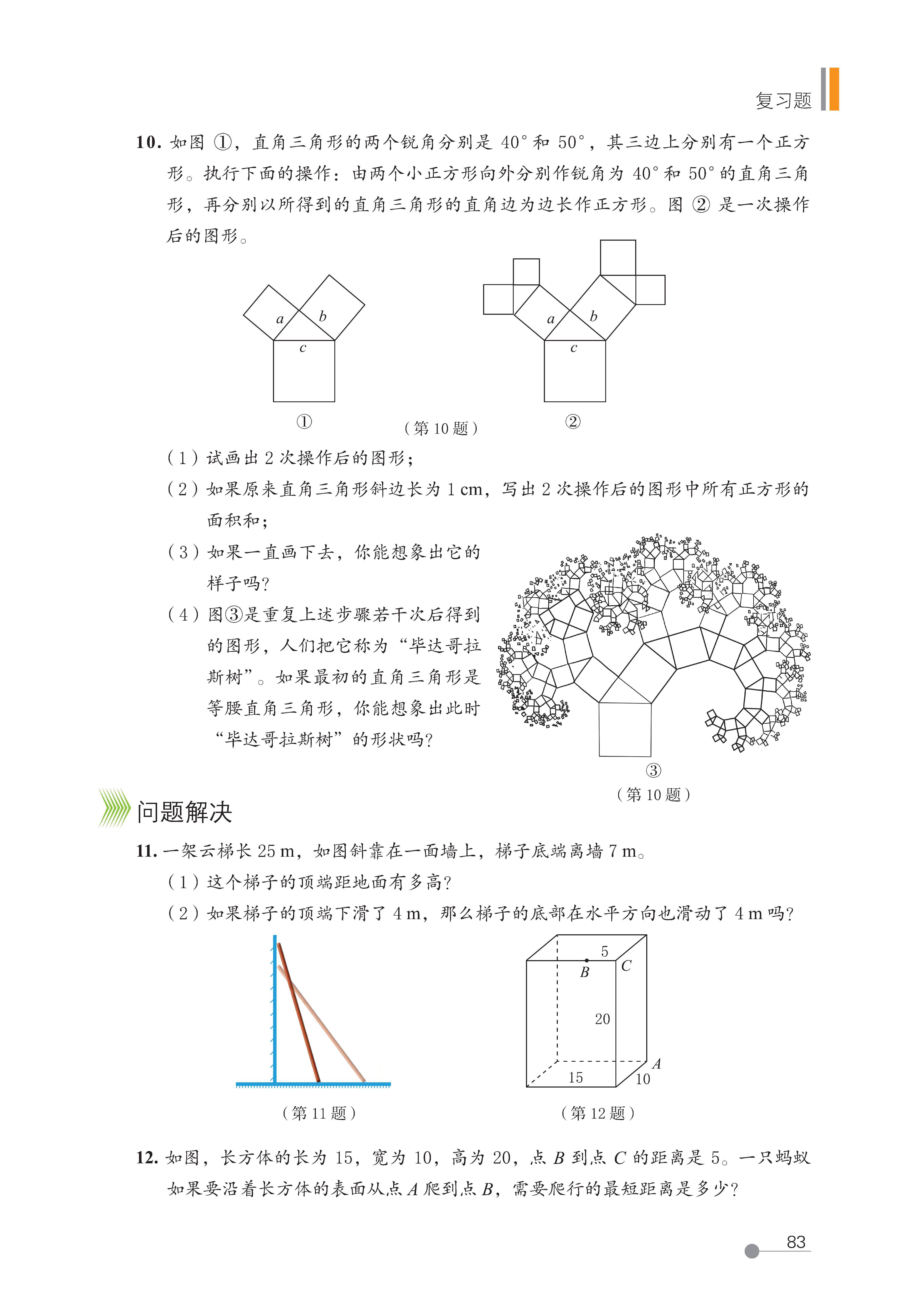 直角三角形 有一个内角是直角(等于 90°)的三角形(直角所对的边叫 “斜边”,另两条边叫 “直角边”)