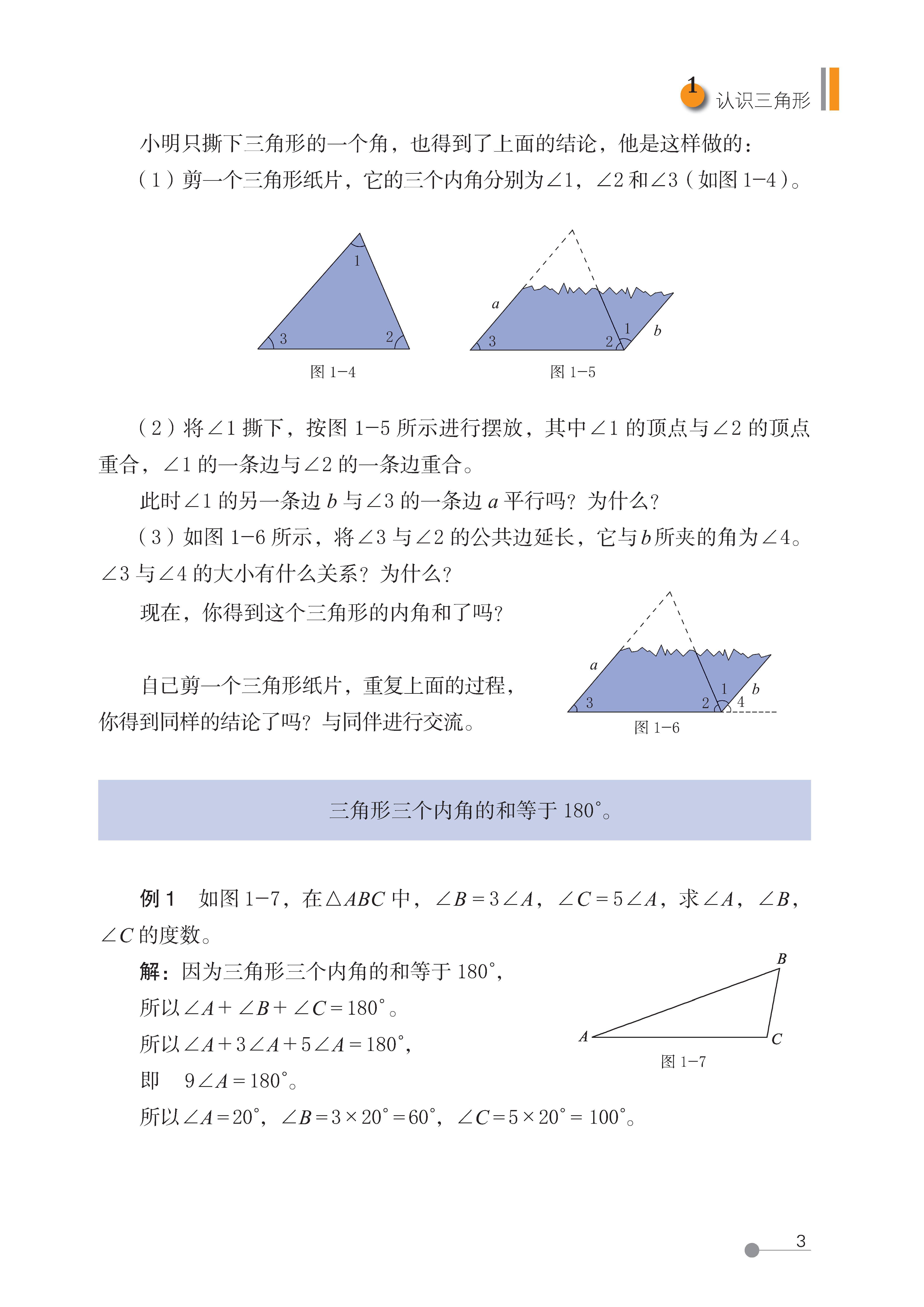 性质 1:内角和定理:三角形的三个内角和等于 180°(可通过 “剪拼内角” 或 “作平行线” 证明)。