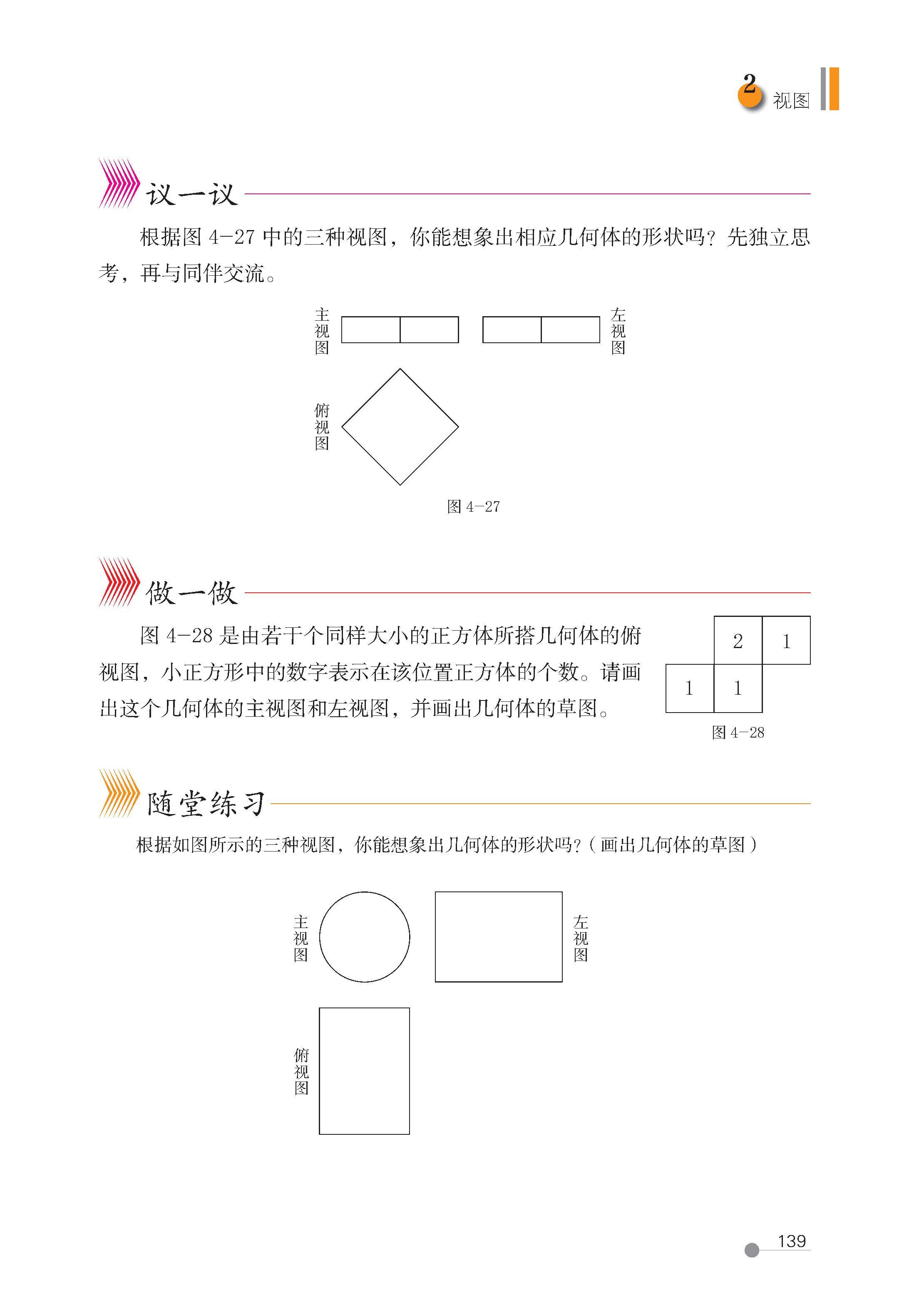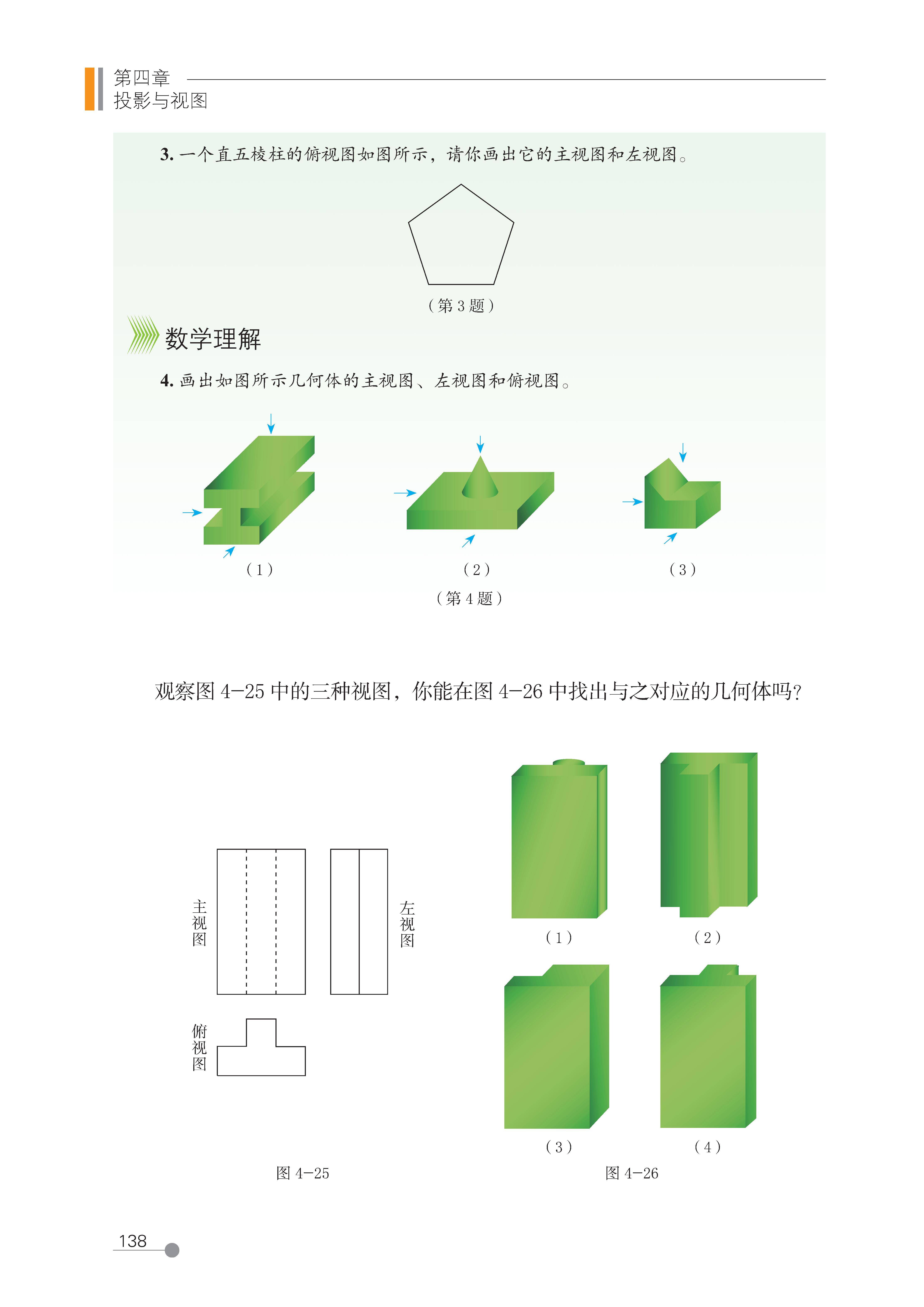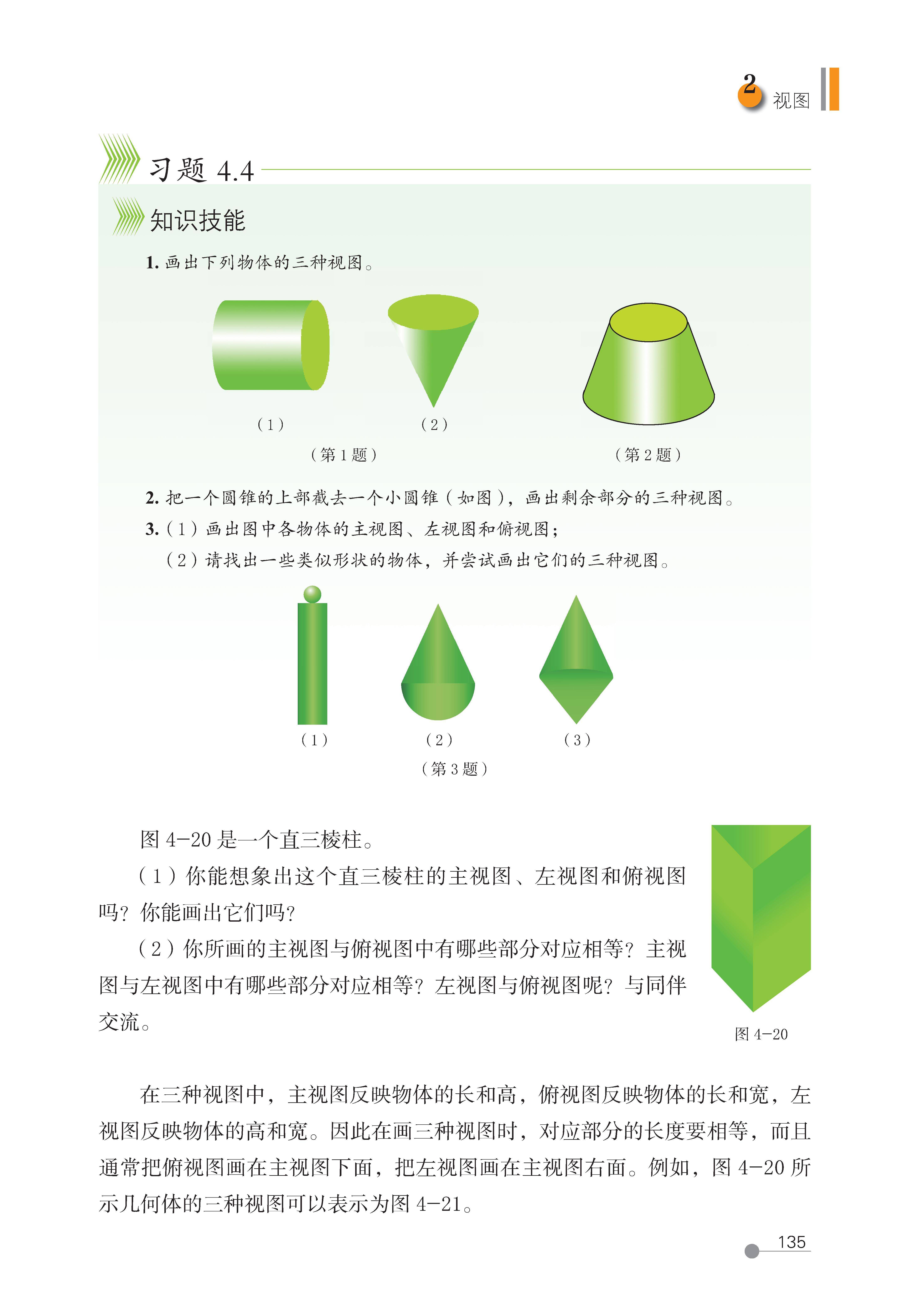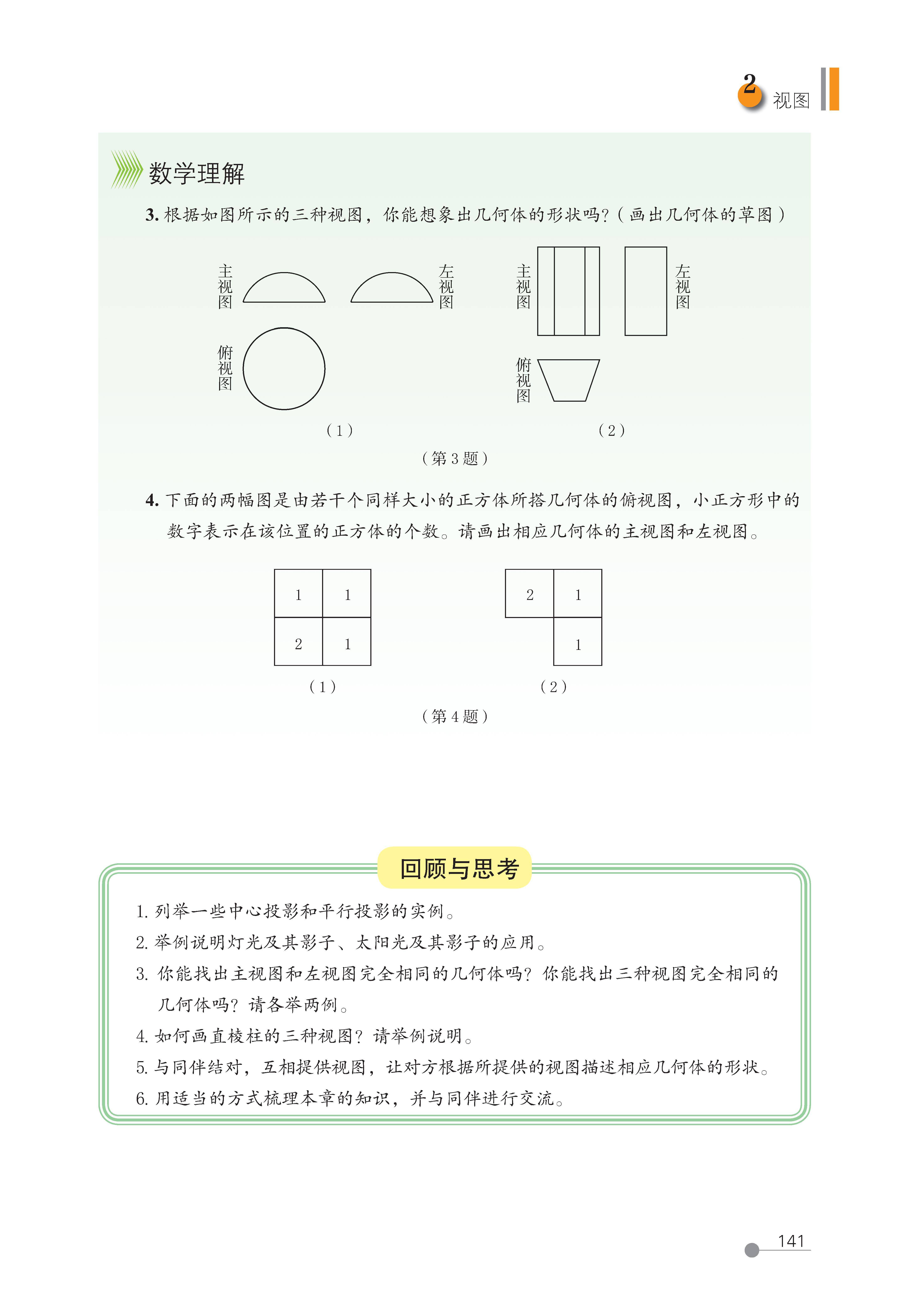 二、第二部分:视图(第 2 节)—— 掌握 “立体图形→三个平面视图” 的转化与应用