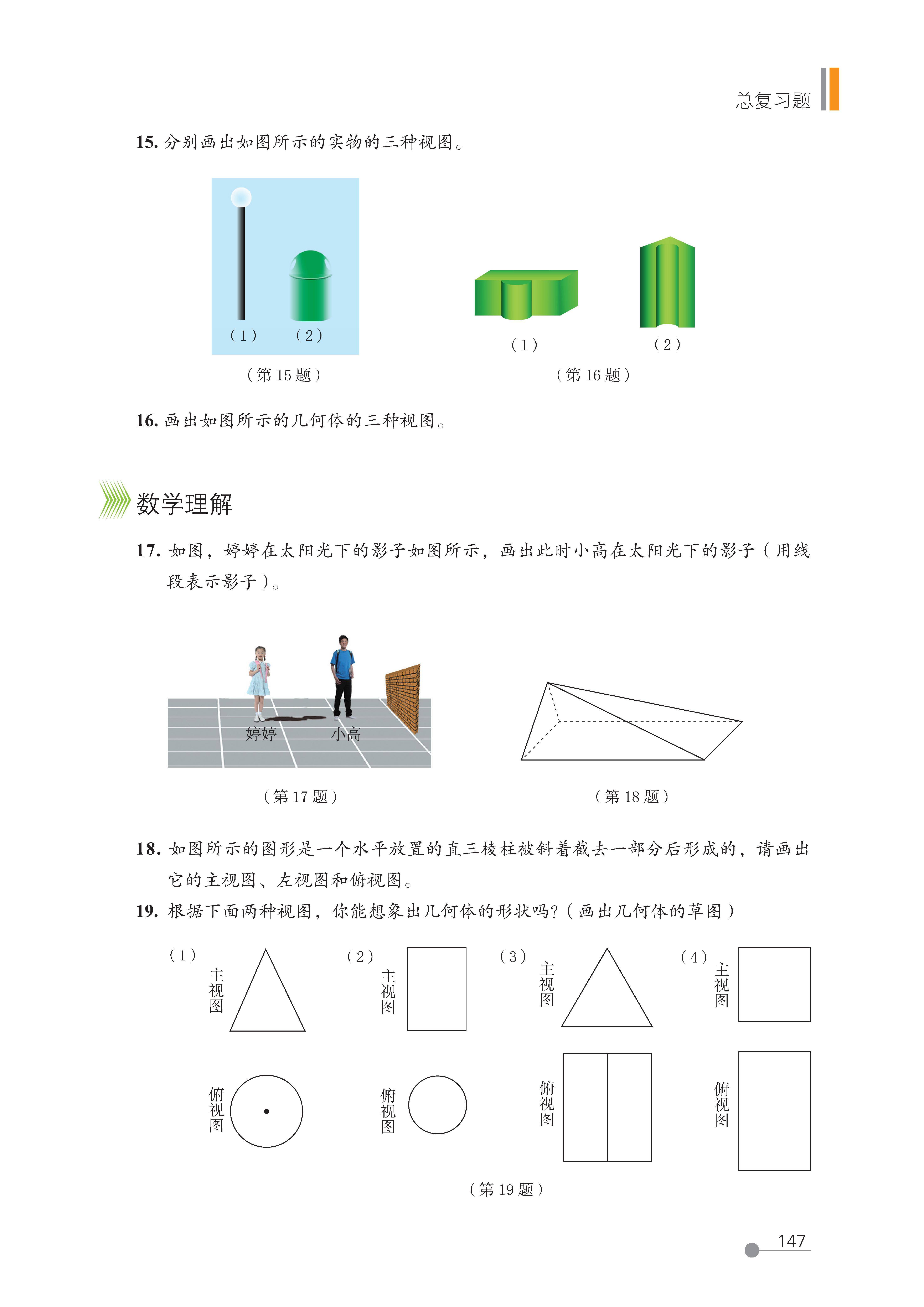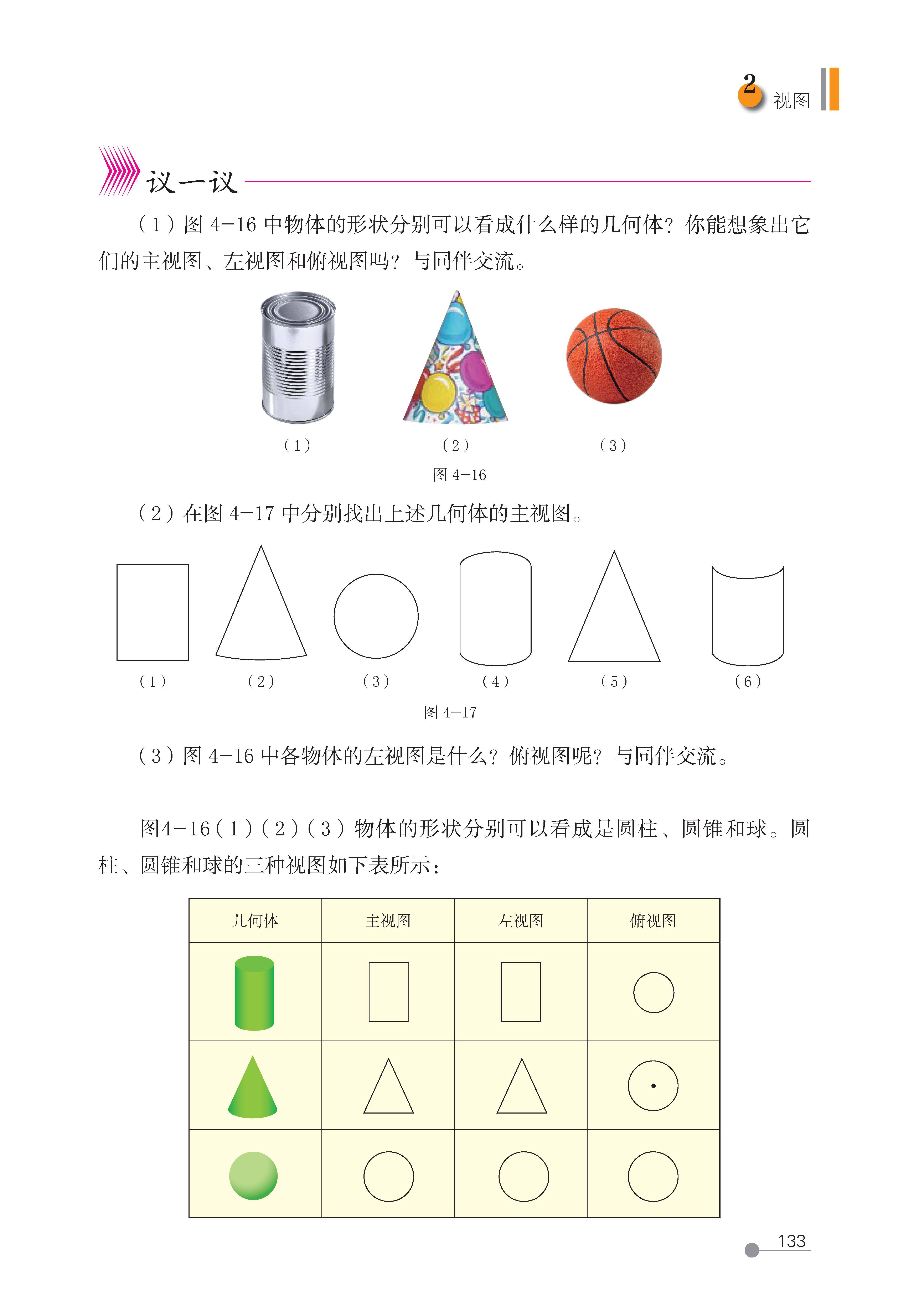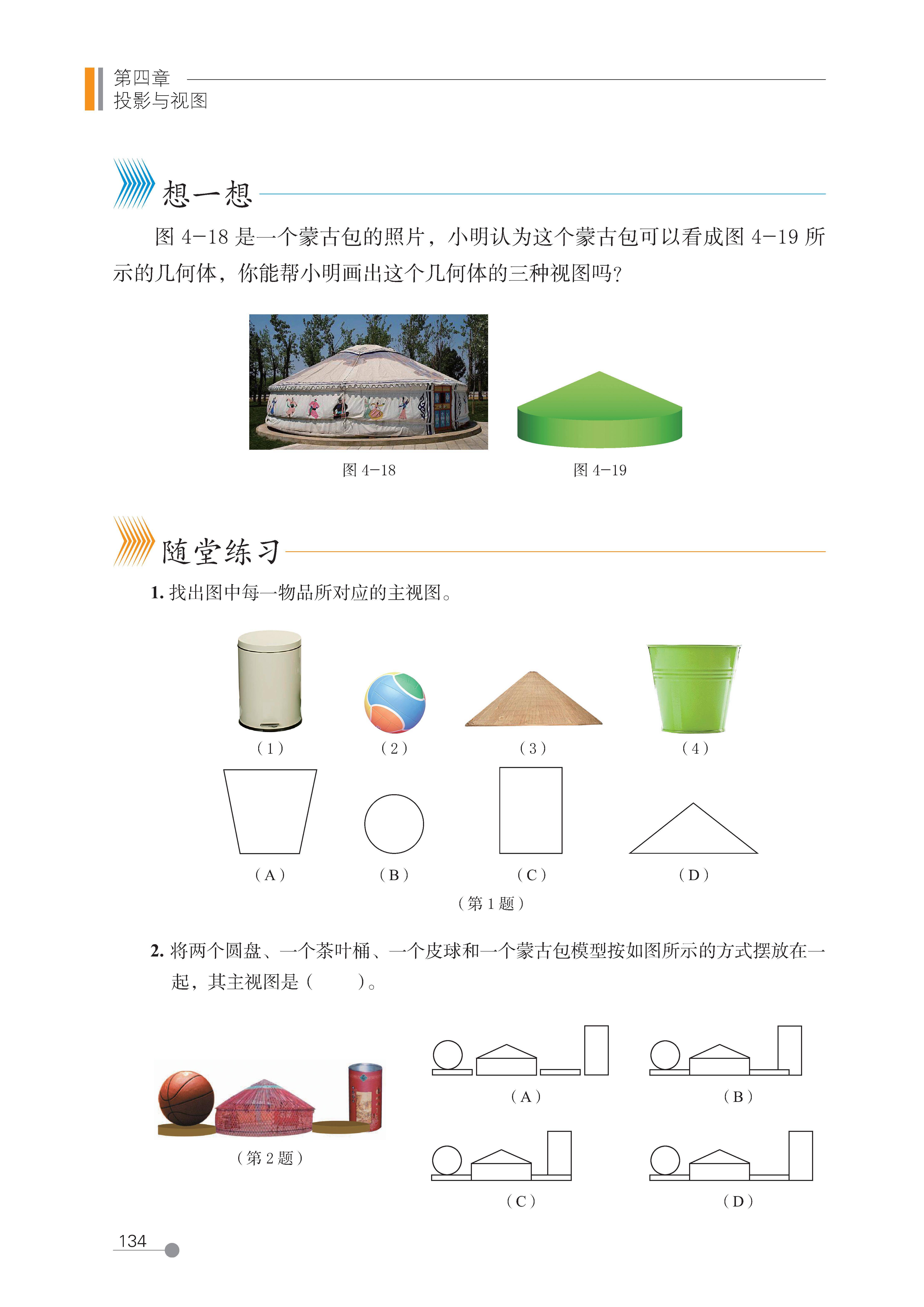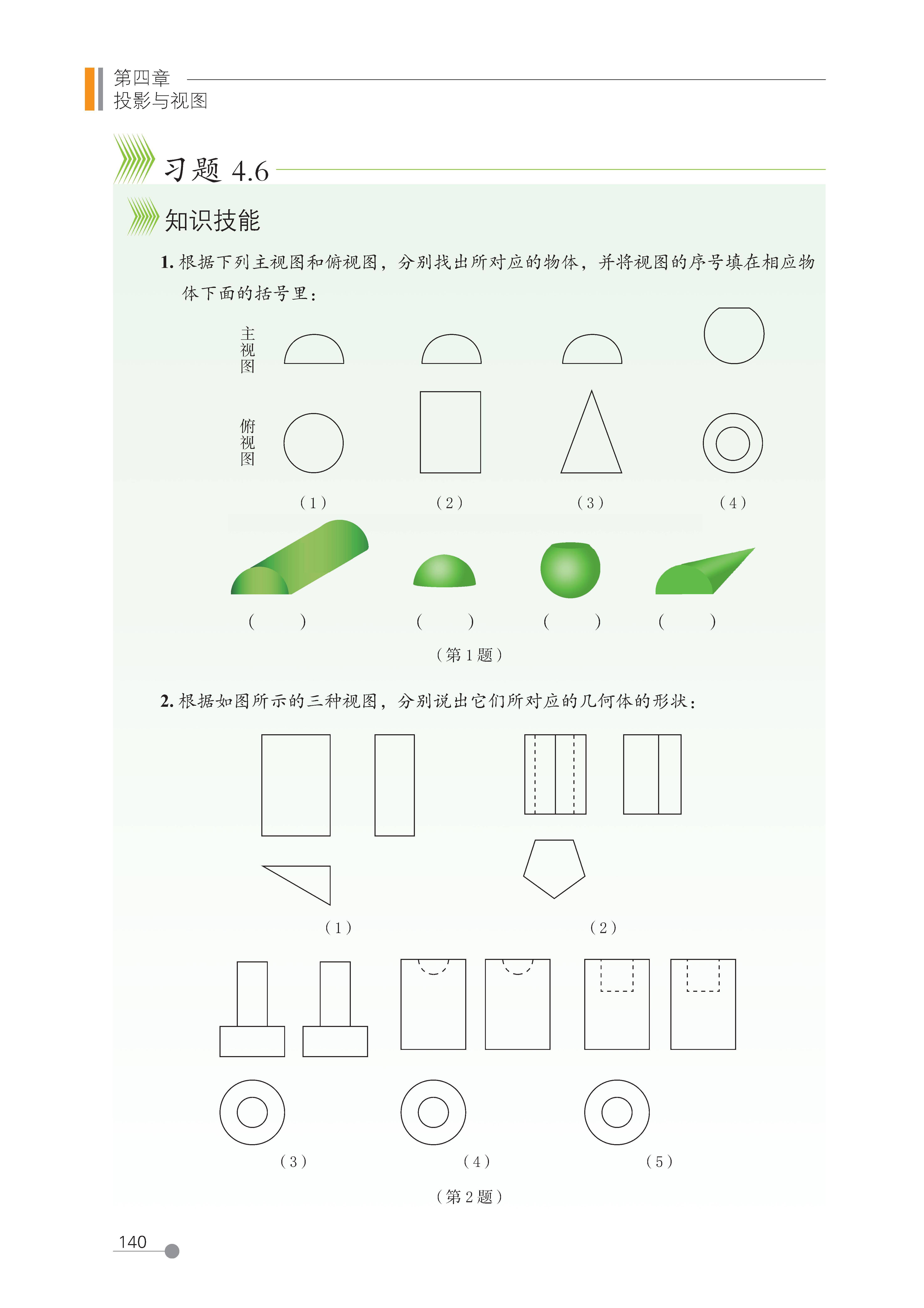 二、第二部分:视图(第 2 节)—— 掌握 “立体图形→三个平面视图” 的转化与应用