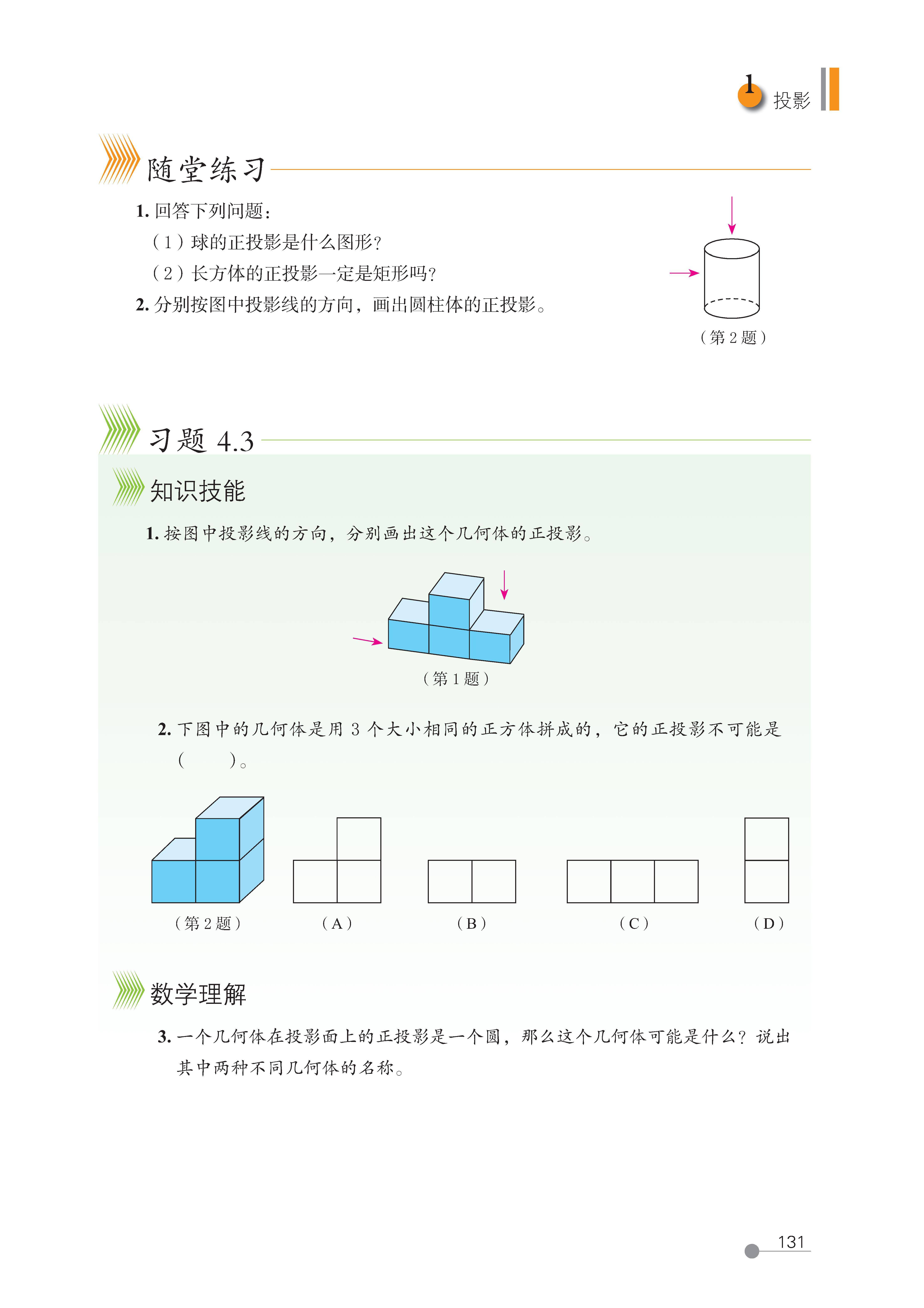 一、第一部分:投影(第 1 节)—— 理解 “立体图形→平面影子” 的转化逻辑