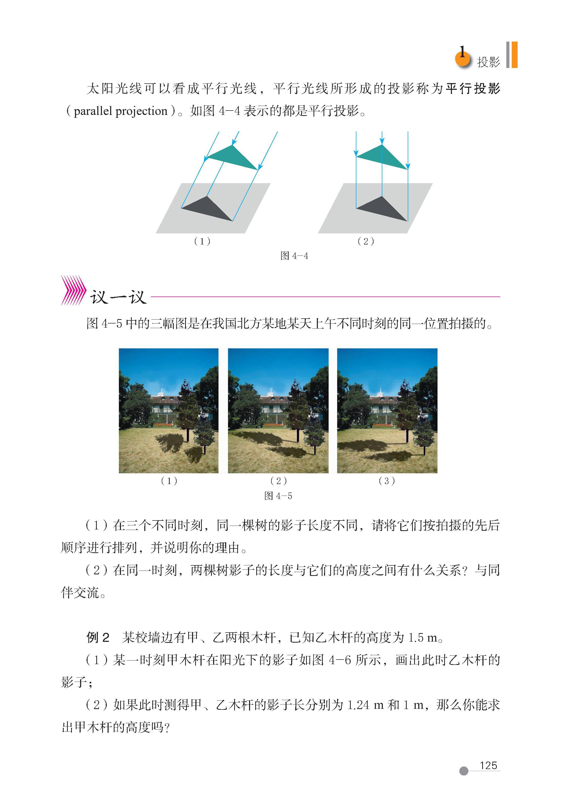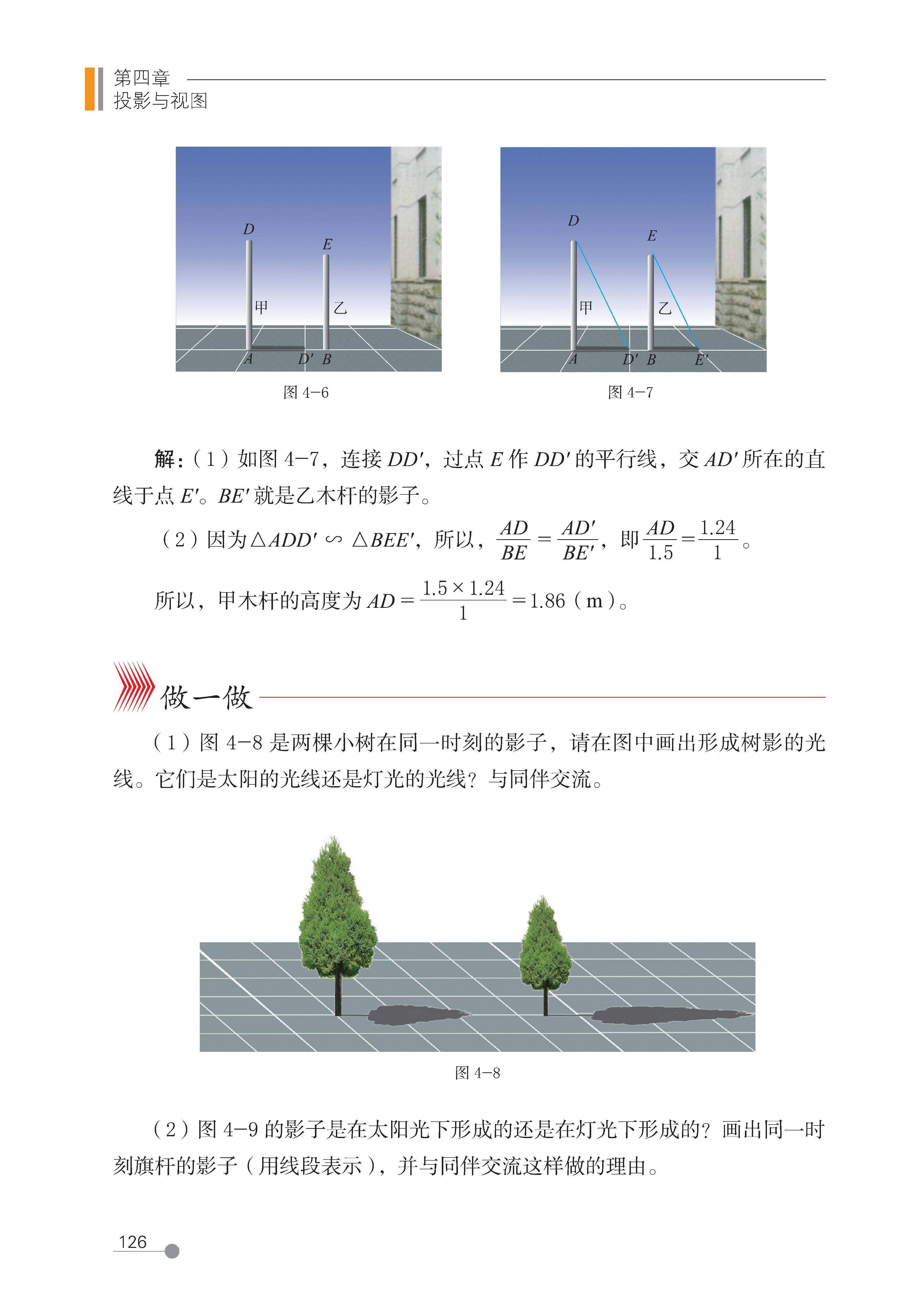 2. 平行投影的应用(重点是 “太阳光下的影长计算”)