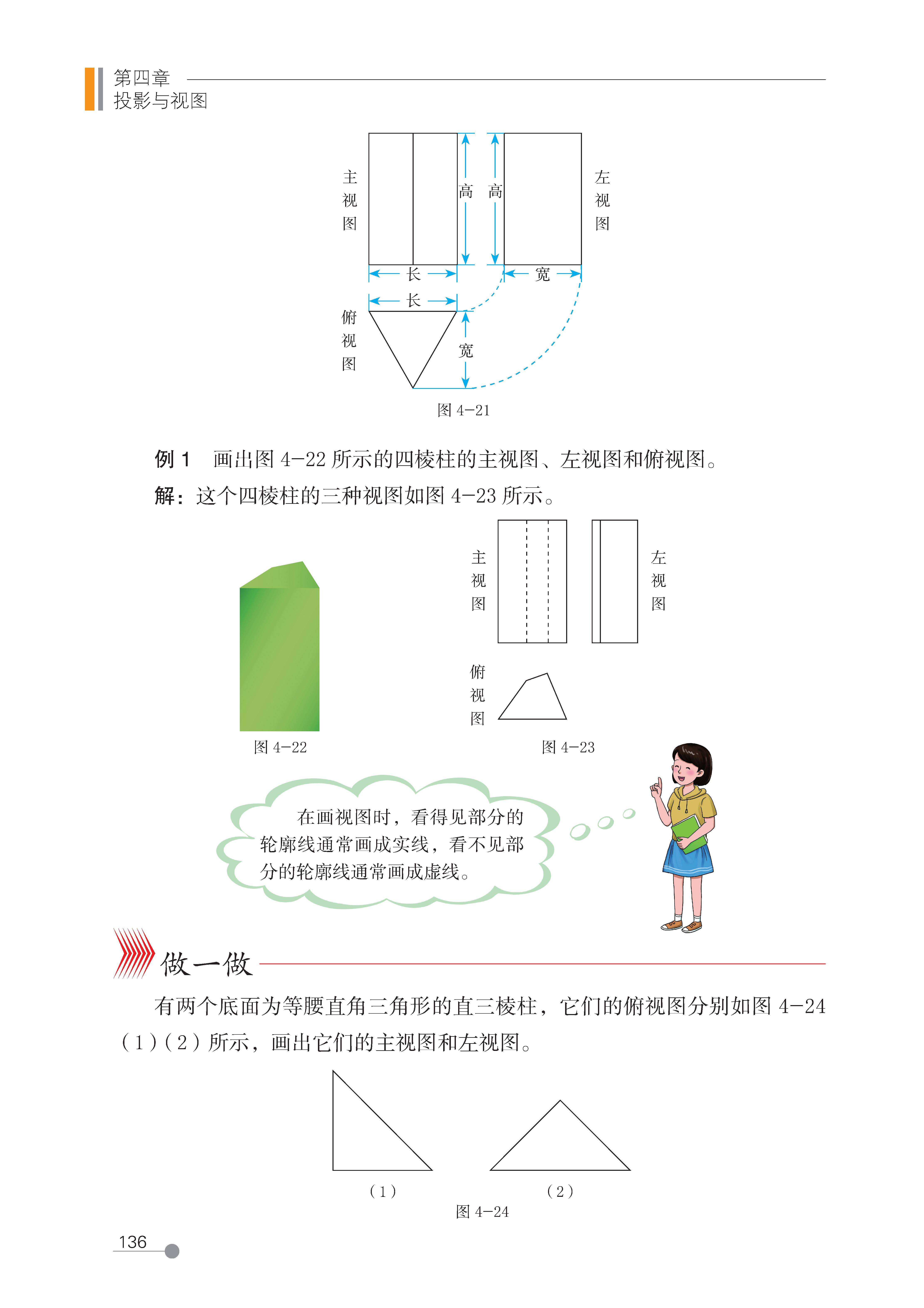综上,第四章 “投影与视图” 的学习重点可概括为:理解两种投影的区别与应用,掌握三视图的定义、摆放规则、绘制方法,能由三视图还原立体图形,并结合视图尺寸进行计算,核心是突破 “平面与立体的转化”,提升空间想象能力。