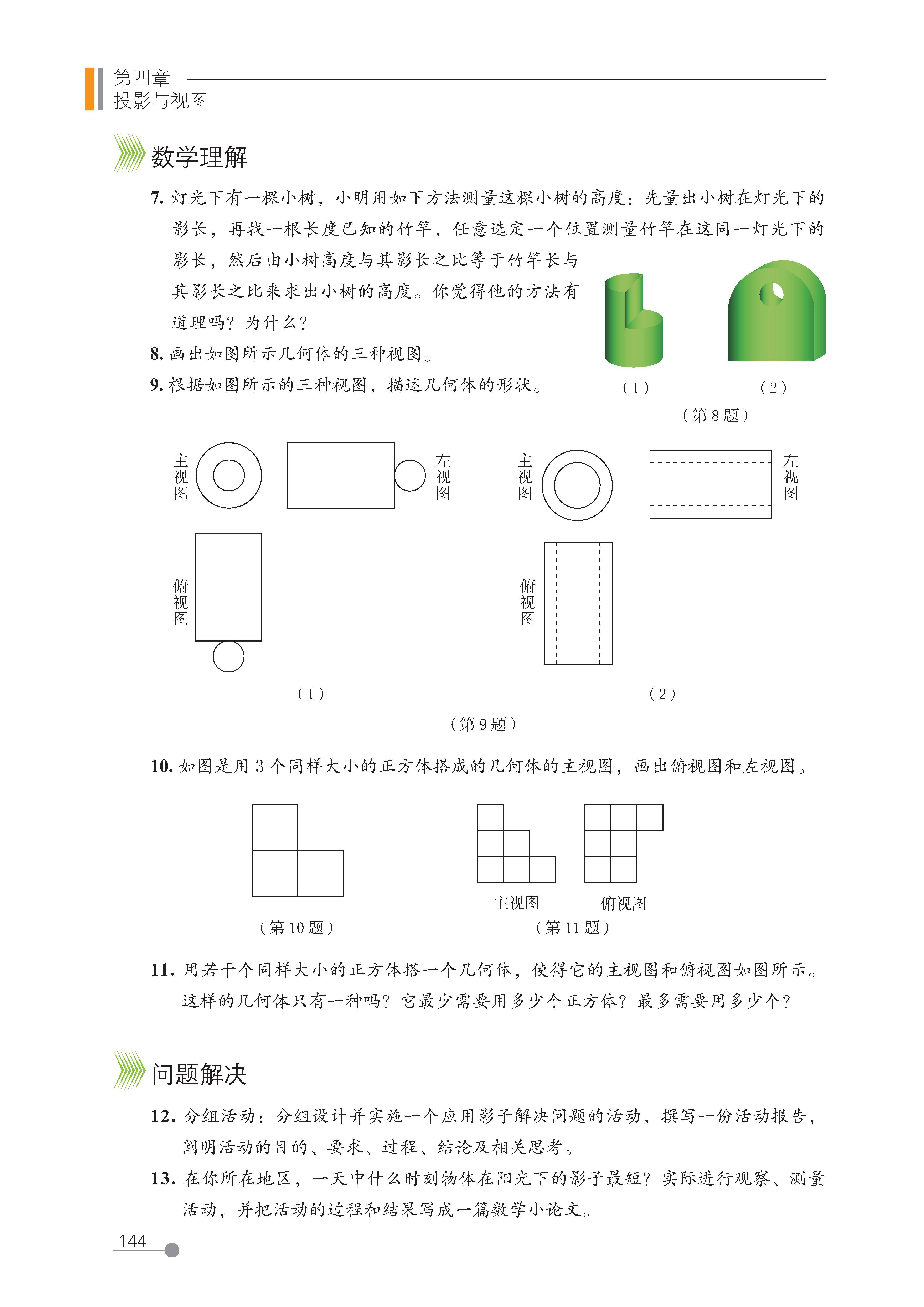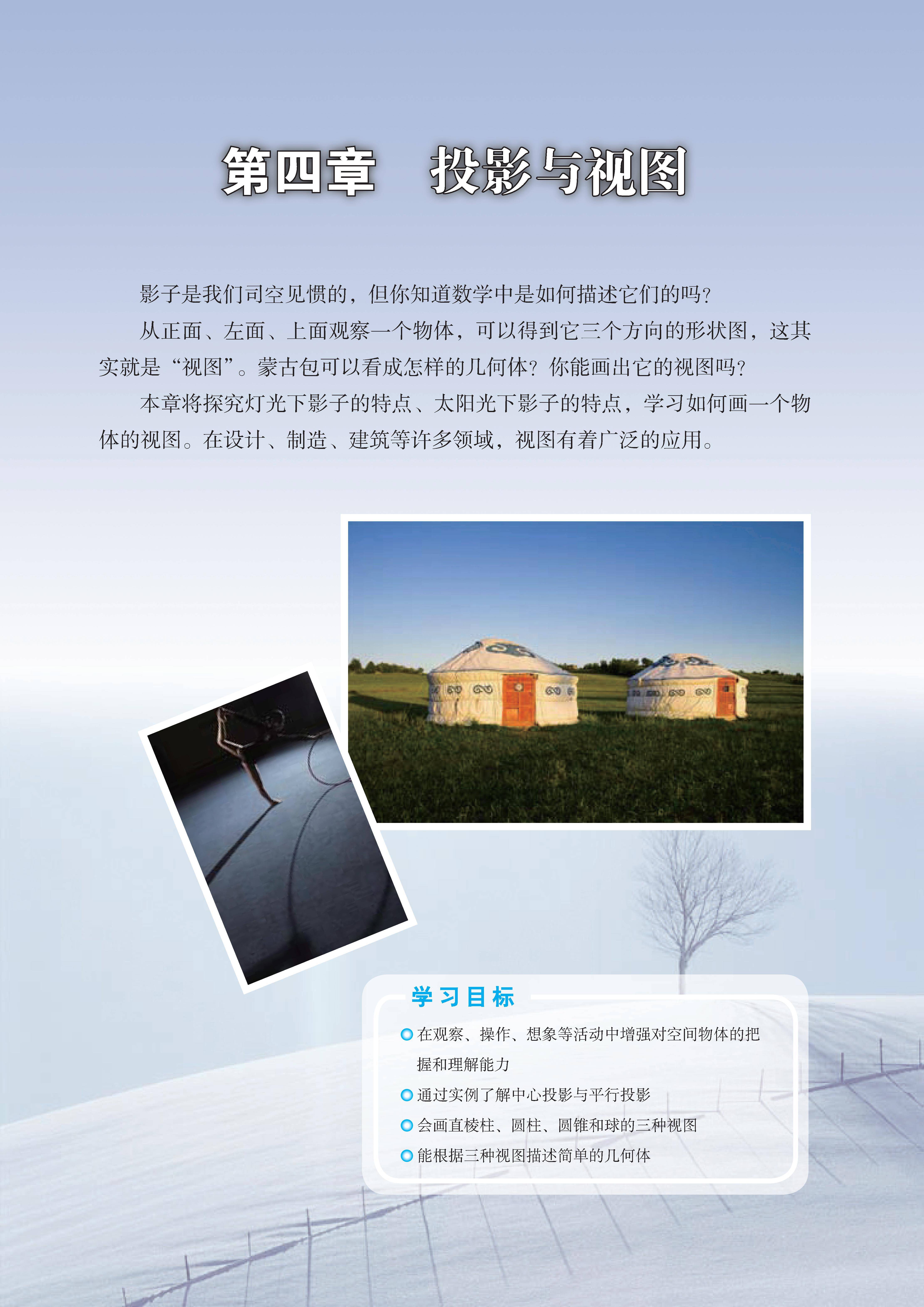 鲁教版九年级上册数学第四章 “投影与视图” 是几何知识从 “平面” 向 “立体” 深化的关键章节,核心是培养学生的空间想象能力和从不同视角分析立体图形的能力,其学习重点可围绕 “投影” 和 “视图” 两大模块展开,具体拆解如下:
