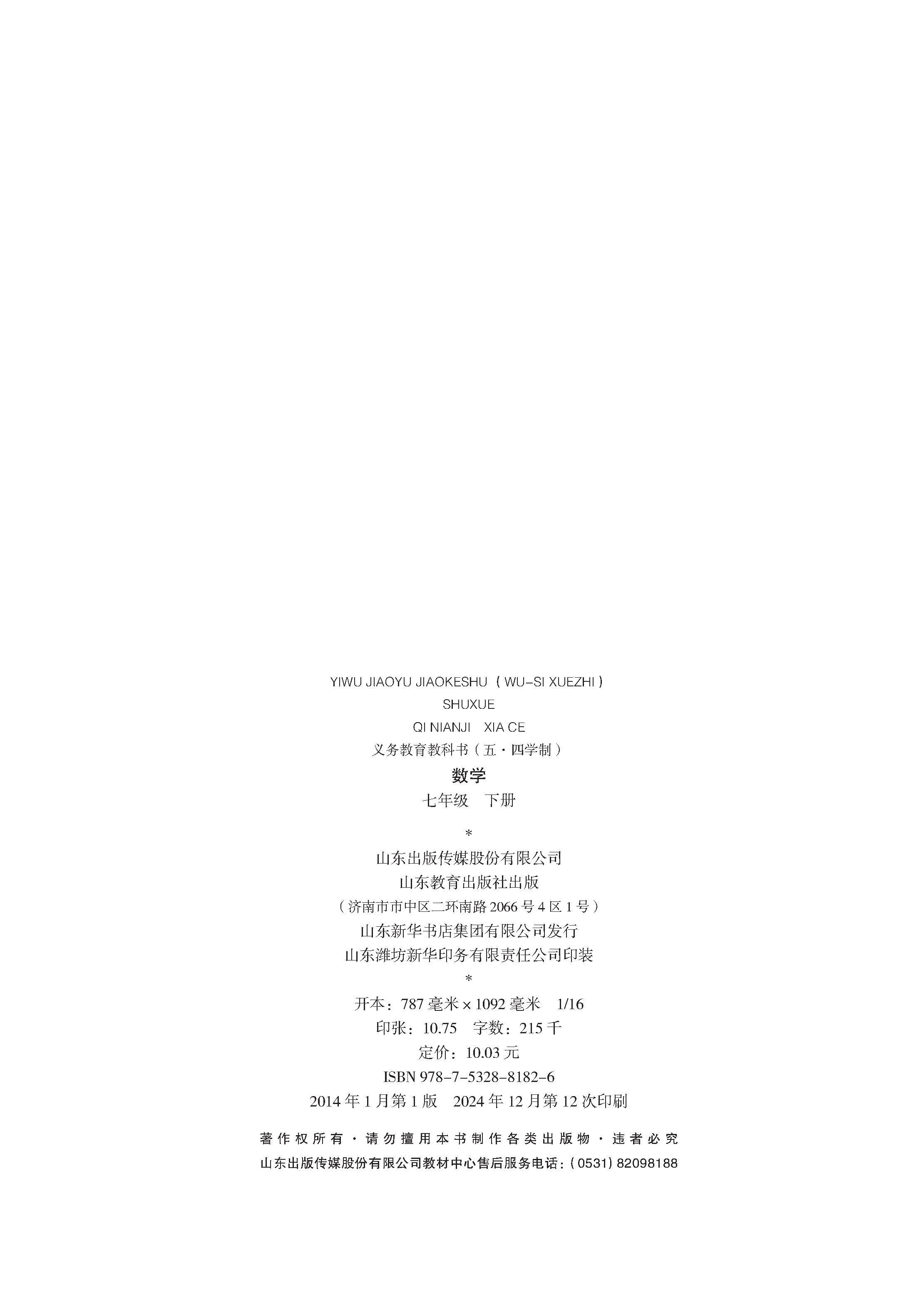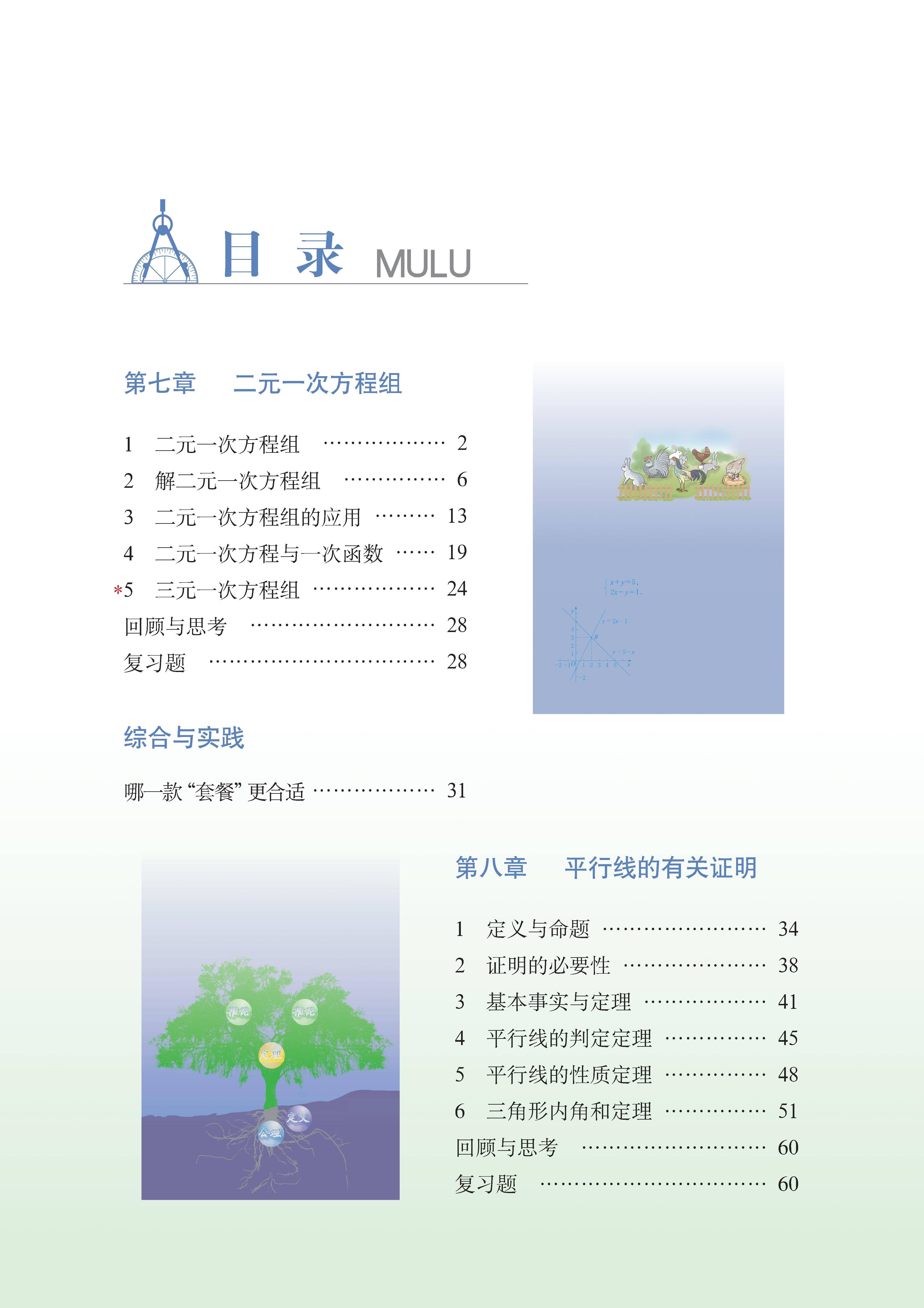 鲁教版七年级下册数学电子课本的目录如下: