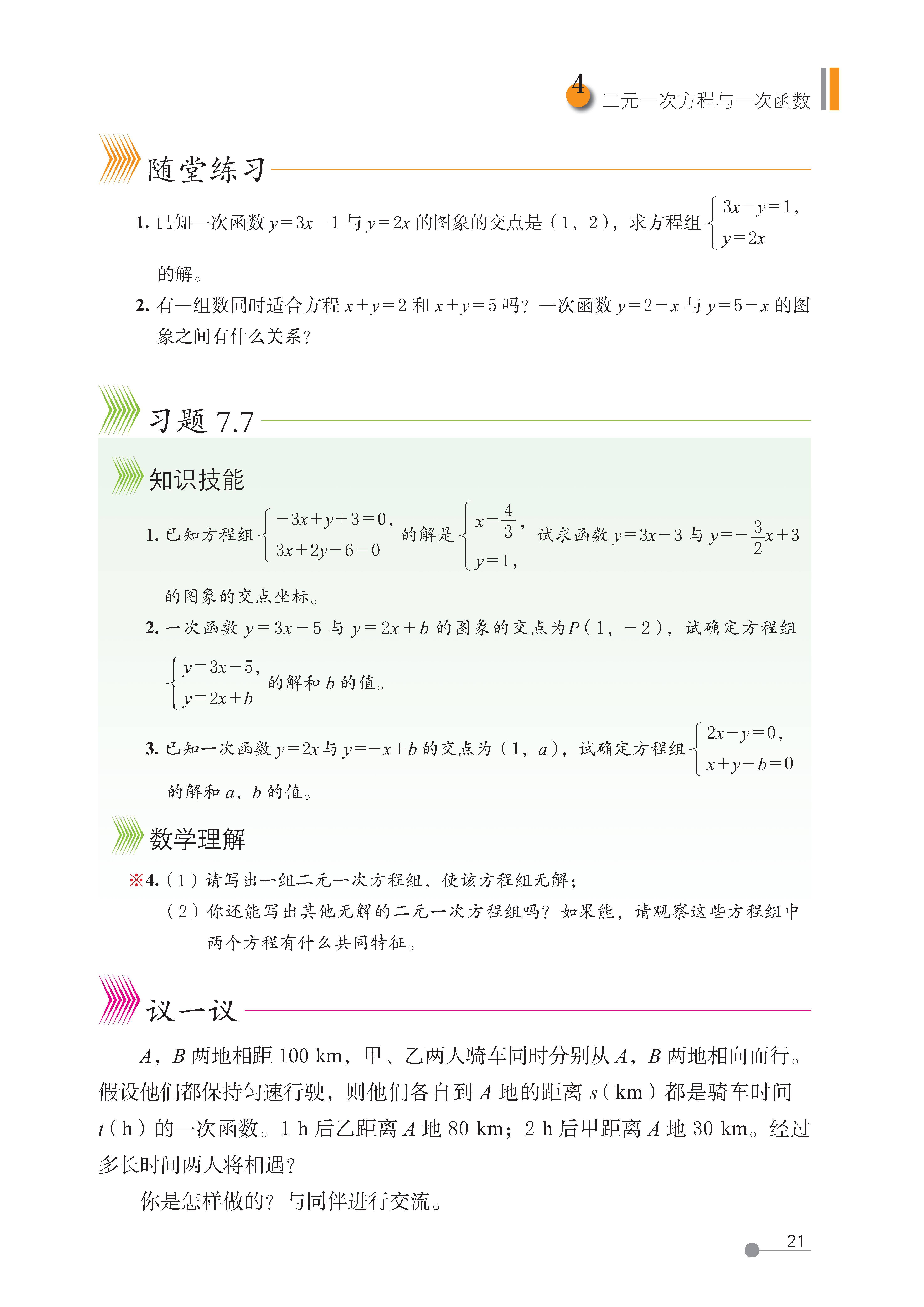 第 4 节 二元一次方程与一次函数