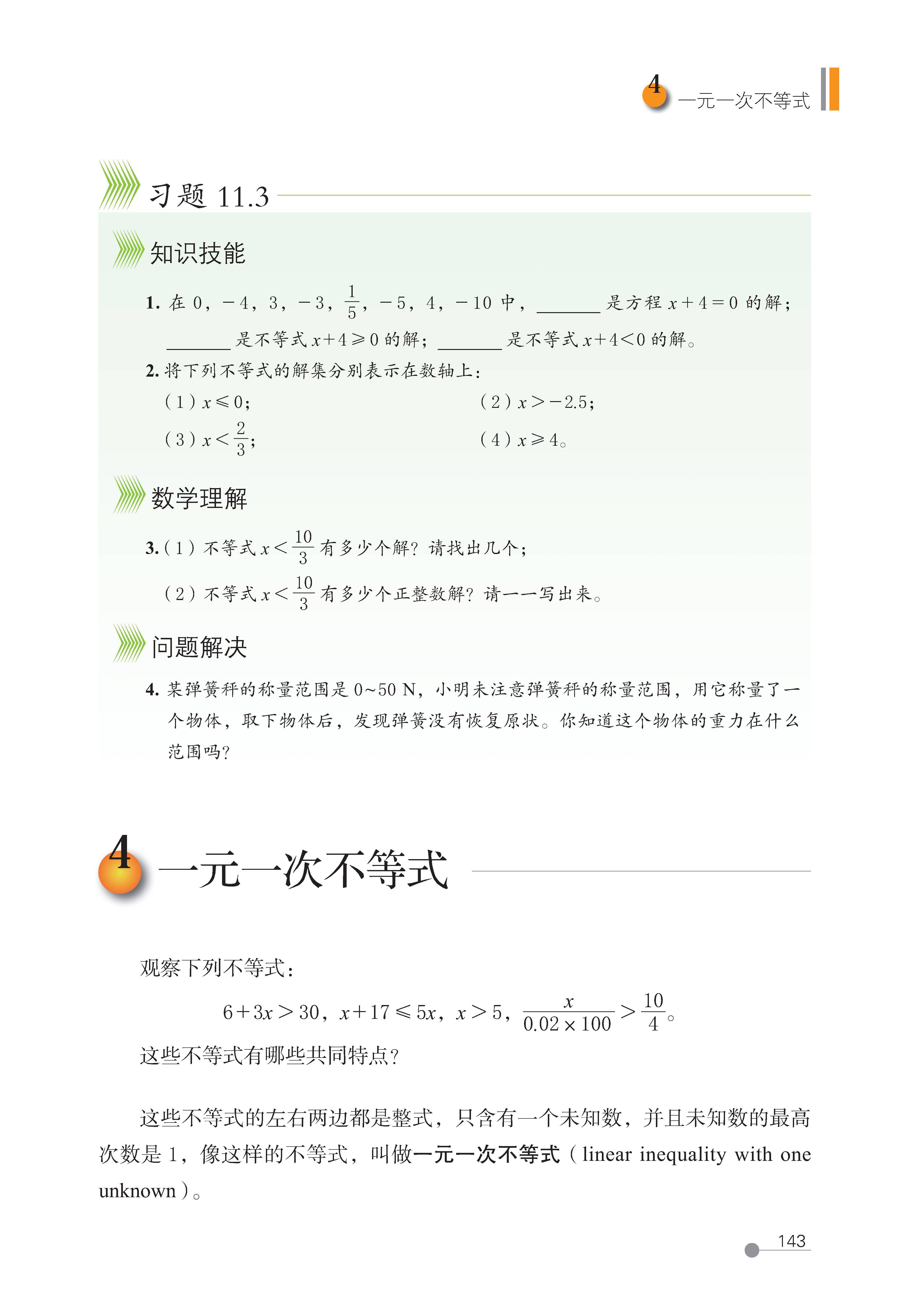 第 4 节 一元一次不等式