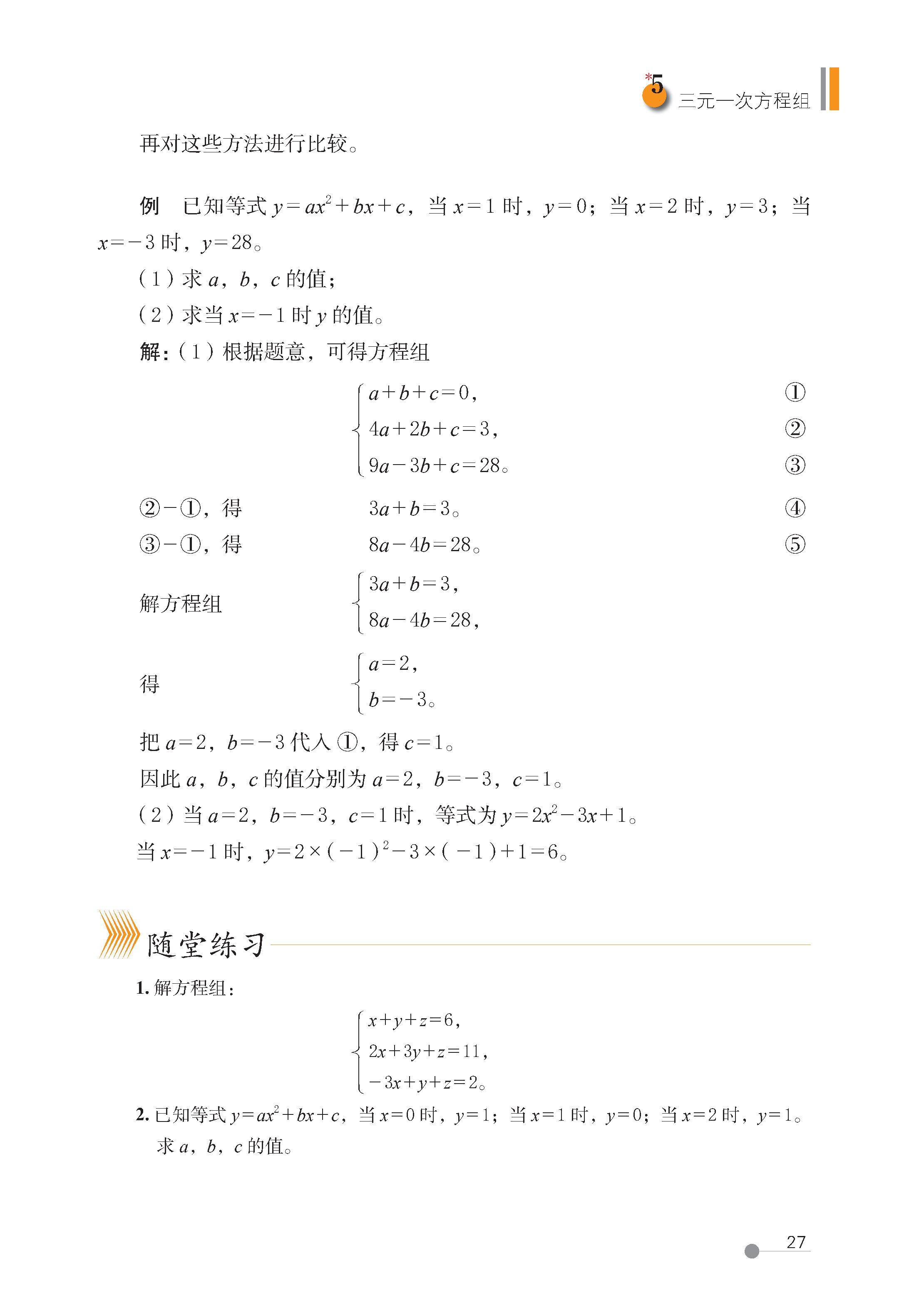 第 5 节 三元一次方程组