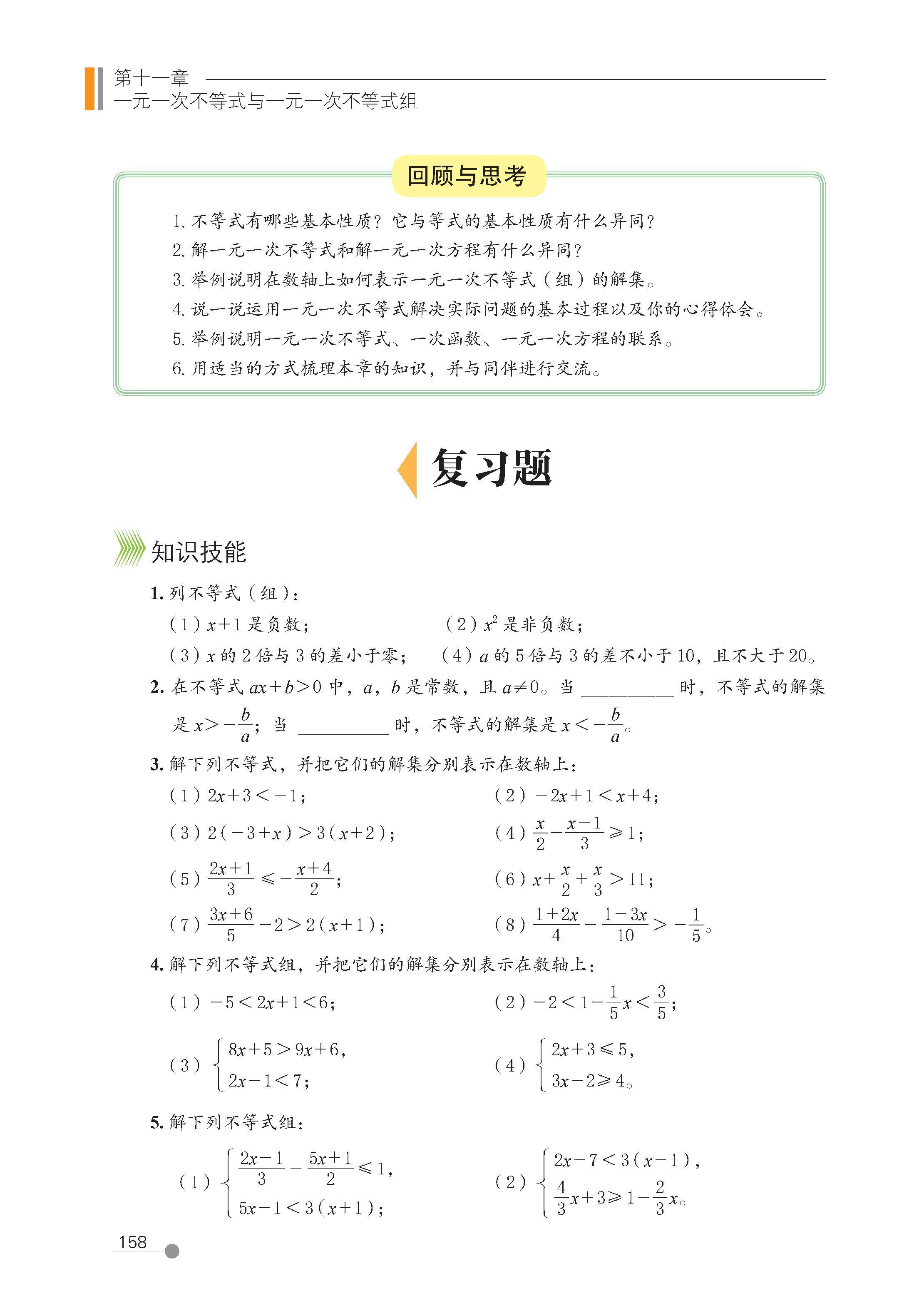第十一章 一元一次不等式和一元一次不等式组