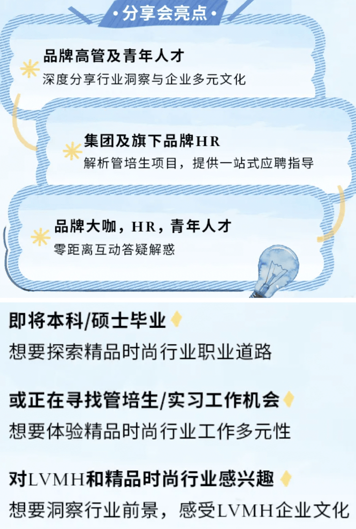 但是LVMH这场宣讲,在诺曦的观感里,虽然嘉宾来得多、讲的时间长,但却像是车轱辘话来回说。“七八个不同职位、不同年龄、不同经历的嘉宾,讲出一模一样的关于美、奉献、热爱的话术。”她表示,有学生在互动环节向嘉宾请教应聘tips,嘉宾还是绕回了“要对美有热爱”,让她很困惑:“这种话我们去跟HR说,你觉得HR会要我们吗?”
