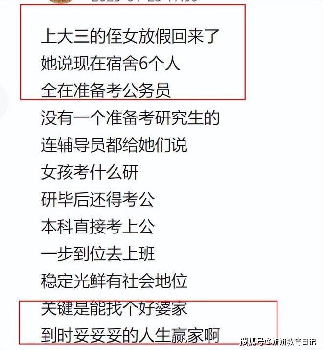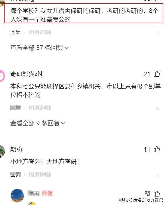 但是道理就是这样的道理,也伤害到了不少家长的心情。比如笔者还看到有的家长立马说,自己的女儿宿舍8个人没有一个人准备考公。