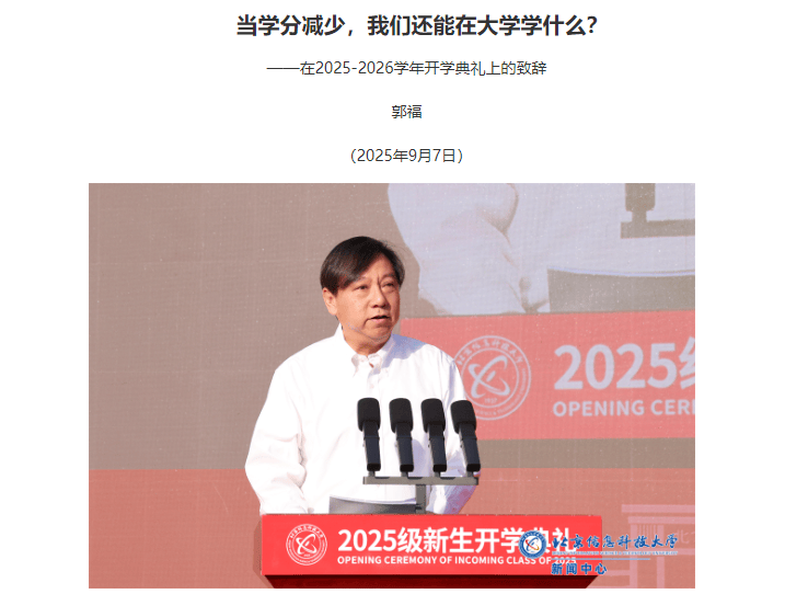 今年9月初,北京信息科技大学校长郭福在2025级新生典礼上发表演讲时表示,减少学分不只是一个数字的变化,而是教育理念的一次转型。北京信息科技大学敢为人先,率先启动学分精简改革——从2025级开始修订新版培养方案,部分本科专业比起之前最多减少了30学分。此次学分骤减,意味着学生无需学习没必要的“水课”,课堂上做到“门门金课”,摒弃无效“淘金”;教学实现“0注水”、“高提纯”,让大学所学真正变为向未来喂料的“细糠”。