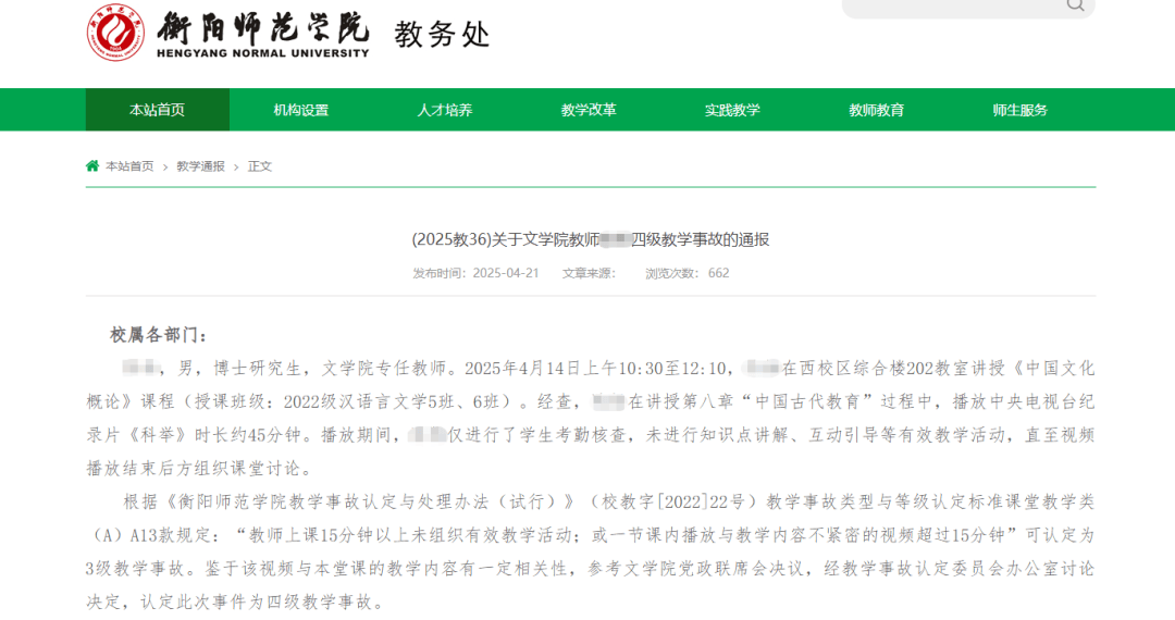 有的“水课”,美其名曰“艺术鉴赏”,实则放电影拖时间。今年4月,衡阳师范学院文学院一名教师在上课期间播放中央电视台纪录片《科举》时长约45分钟,全程仅进行学生考勤核查,未进行知识点讲解、互动引导等有效教学活动,学校通报此次事件为四级教学事故。