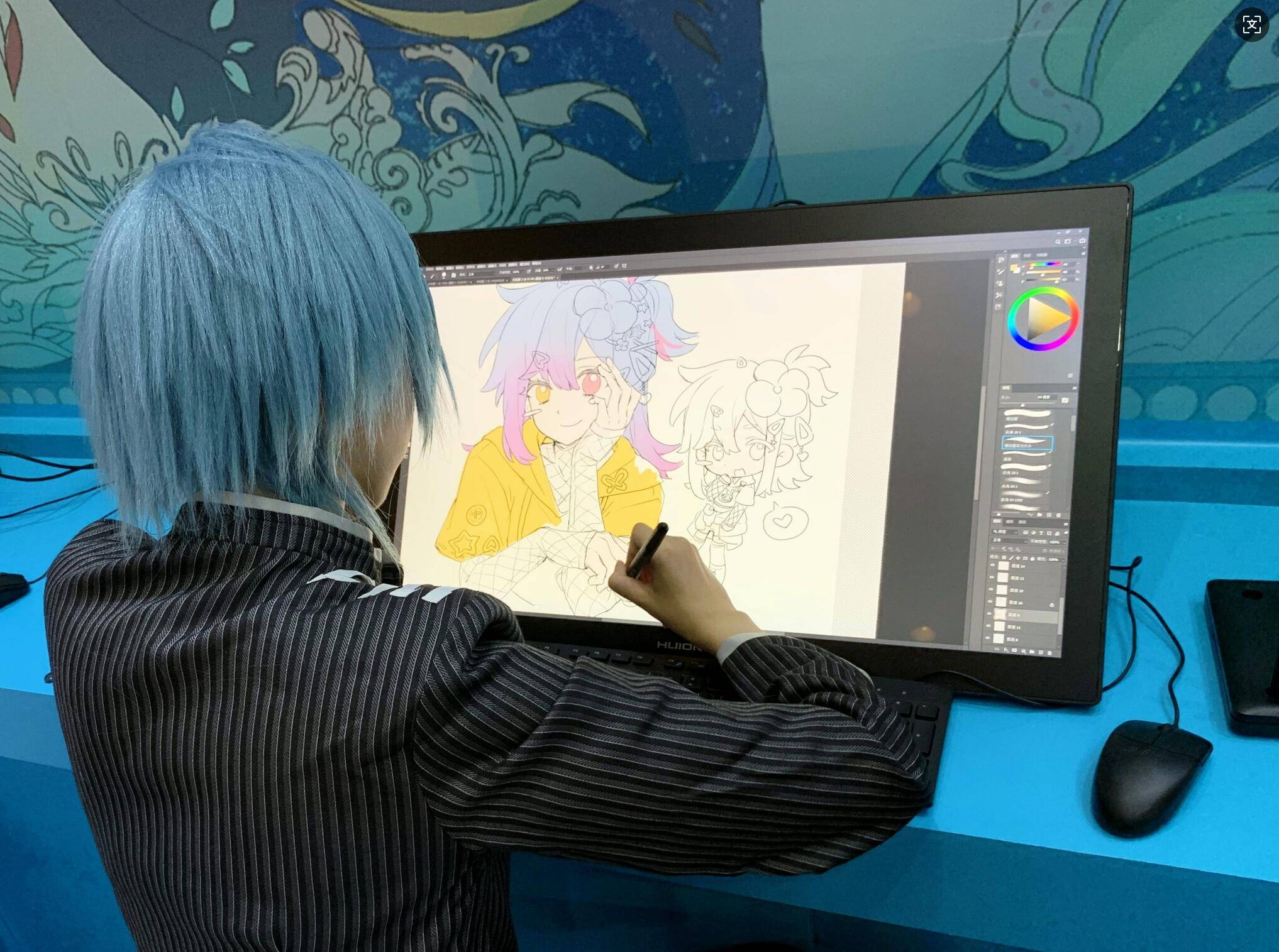 在现场,绘王展出了涵盖数位板、数位屏、一体机、平板电脑的数字绘画产品矩阵,还包括Kamvas Pro 27旗舰数位屏、Kamvas Studio 24绘图一体电脑、Kamvas 16(GEN3)数位屏以及Inspiray Frego系列"小黑板"数位板等明星产品。从新手友好的入门产品到价值万元的专业级创作设备,现场所有展品观众均可自由体验,手握画笔亲身感受数字绘画的独特魅力。