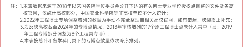 2.本文所呈现的数据中,工程类专博点数据为不完全汇总和统计,由于《国务院学位委员会关于下达有关工程类专业学位博士、硕士学位授权点名单的通知》(学位〔2022〕17号)未公开,由高校自行公开本校获批情况,相关数据为手动采集整理自相关高校官网,为不完全汇总,仅供参考,后文图表亦已注明,不再额外标注。