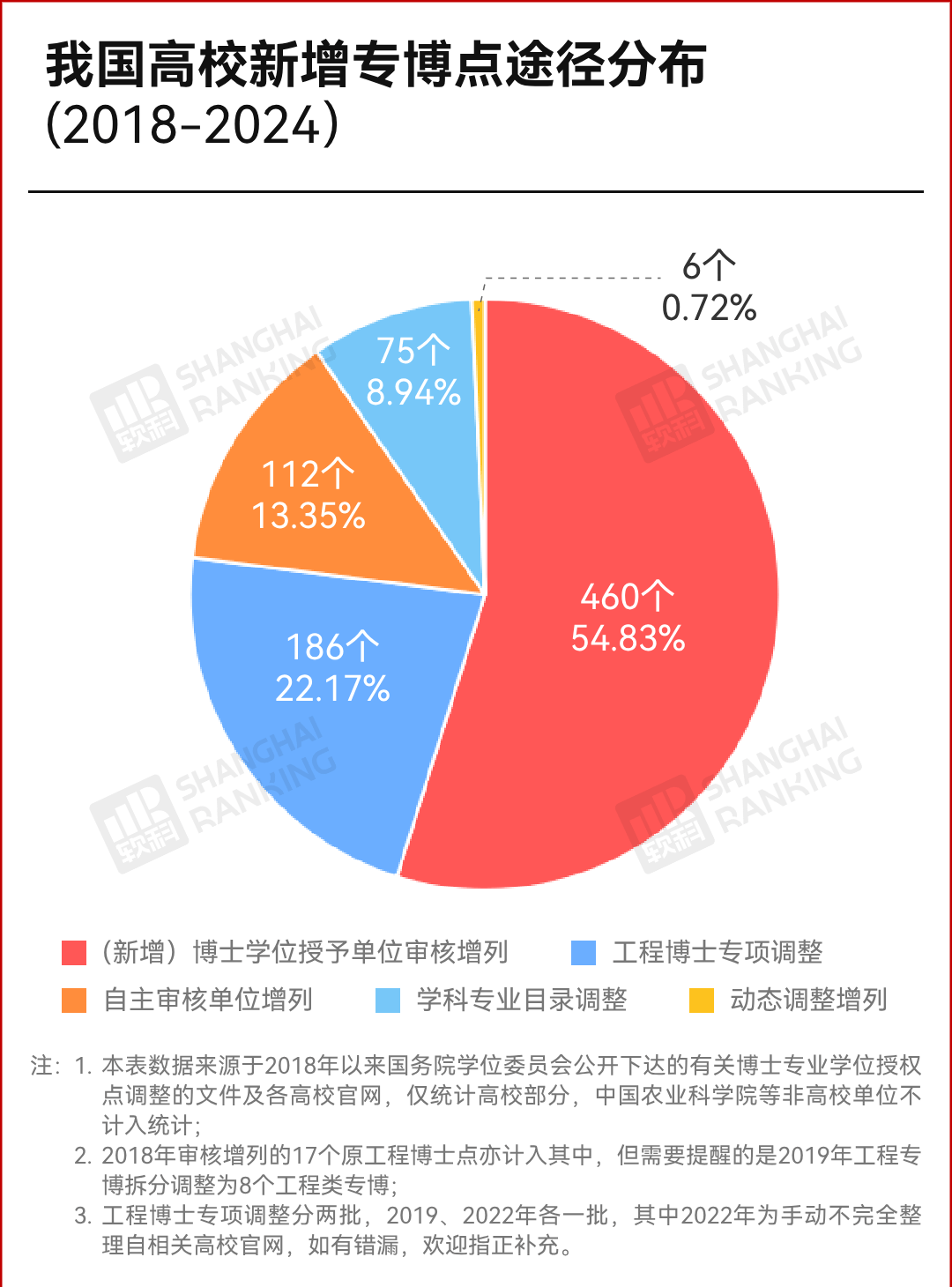 2018年起,我国每3年开展1次新增学位授权审核,配合每年开展1次的学位点动态调整以及自主审核单位增撤学位点,学位授权审核工作逐渐进入常态化阶段。2018年以来,我国哪些高校增设了专博点?哪些专博最“热门”?本文整理并统计了2018年以来我国高校专博点增列情况(其中工程类专博点为不完全统计,后附详细说明),以作回顾。
