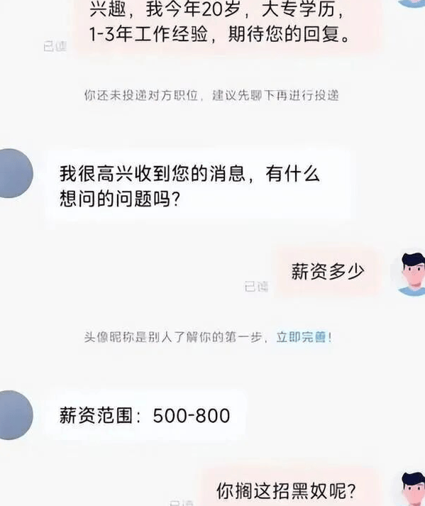 校招我们能这么考虑,但是在某平台上找工作的时候要是遇到类似情况,有同学发文说自己真的遇到过hr给自己开出了500-800的薪资。也不知道是故意找乐子,还是就是真的是这样。