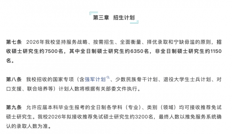 根据章程内容,上海交通大学、北京航空航天大学、北京师范大学、西安交通大学、华中科技大学、天津大学、四川大学等多所高校公布2026年拟招收硕士研究生人数,一起来看: