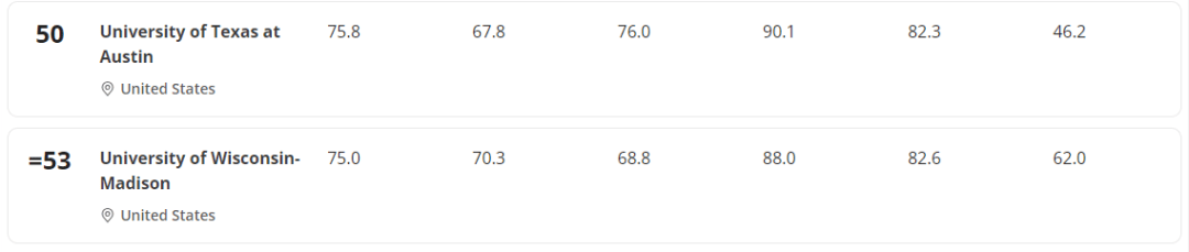 • 威斯康星大学麦迪逊分校上升3名,位列第53名;