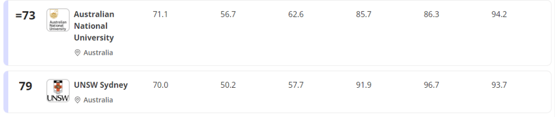 • 澳大利亚圣母大学更是连升两级,首次闯入全球前1000名!