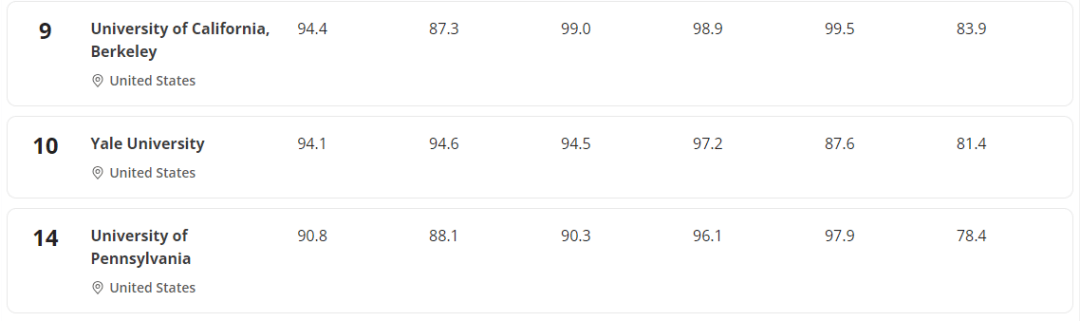 ▪️ 加州大学伯克利分校下降1名,位列第9;