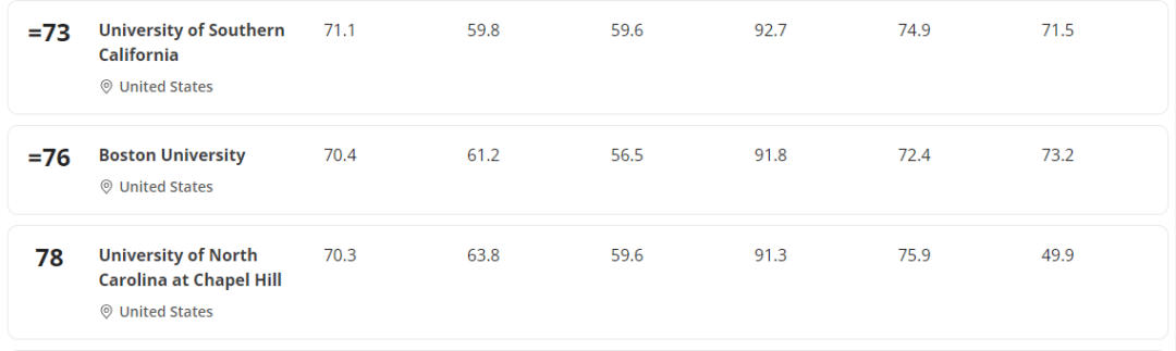 • 北卡罗来纳大学教堂山分校下降8名,位列第78名;