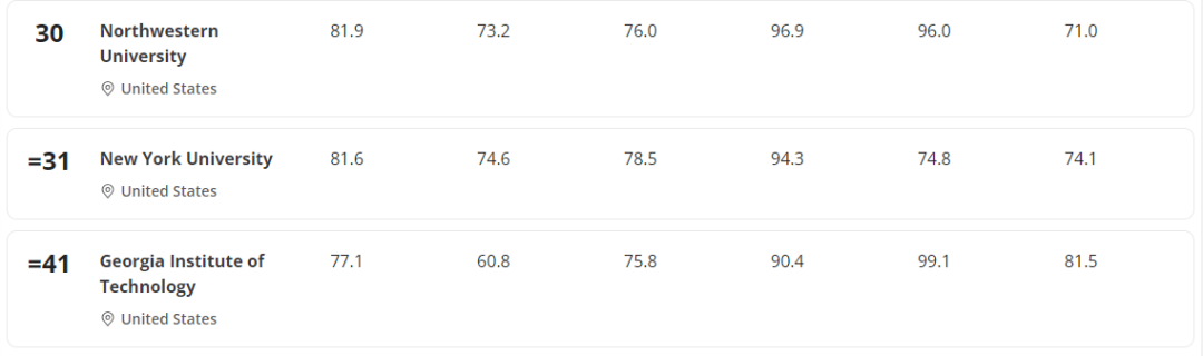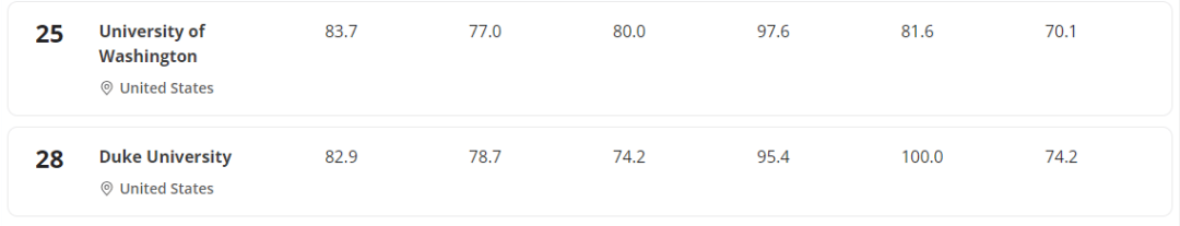 此外,埃默里大学、莱斯大学、德州农工大学、塔夫茨大学、圣母大学都排在了100开外,而乔治城大学、乔治华盛顿大学、东北大学、波士顿学院更是排在了200名以外!