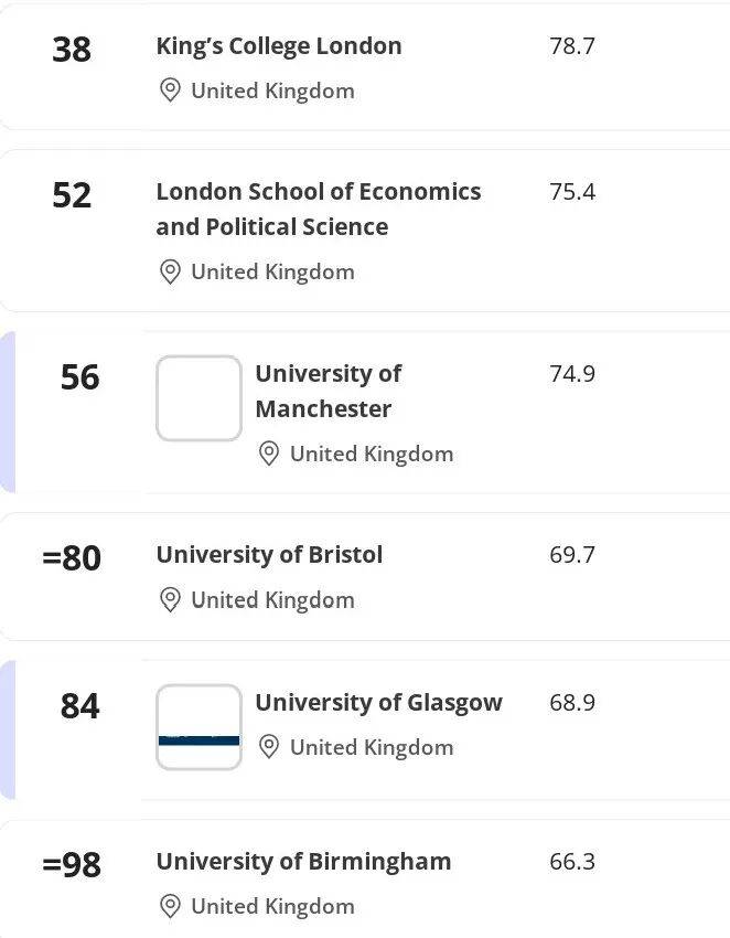 另外,值得特别关注的是伦敦政治经济学院(LSE) —— 该校今年从THE前50跌出。目前已公布的QS和软科排名中,LSE同样未能跻身前50。虽然它在社会科学领域依旧是顶尖存在,但对于某些“要求世界前50”的岗位或政策项目来说,LSE 的排名变化可能会带来一些现实影响。