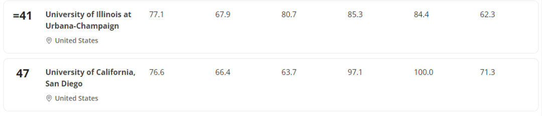 • 伊利诺伊大学厄巴纳-香槟分校上升5名,位列第41名;