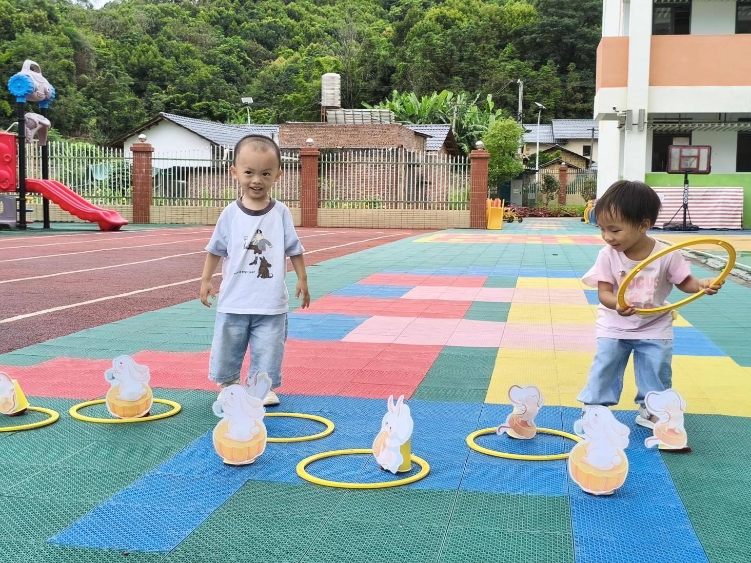 近日,寻乌县城南幼儿园托班幼儿开展套圈活动,以游戏助力孩子成长。