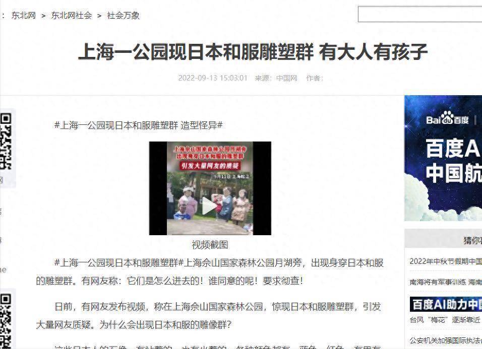 北京街头,一座宇航员雕塑胸前赫然挂着星条旗,上海佘山一个公园里,甚至立起了穿着和服的日本人雕塑,引发家长对误导孩子历史认知的担忧。