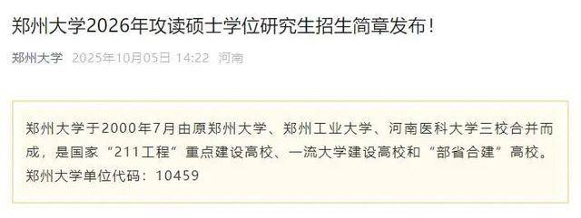 根据章程内容,郑州大学、河南大学、河南农业大学、河南师范大学、河南科技大学、河南理工大学、河南工业大学、河南财经政法大学、华北水利水电大学、河南中医药大学、信阳师范大学、河南医药大学、郑州航空工业管理学院、中原工学院、河南科技学院、安阳师范学院、南阳师范学院、洛阳师范学院、河南城建学院、平顶山学院等多所高校公布2026年拟招收硕士研究生人数,一起来看: